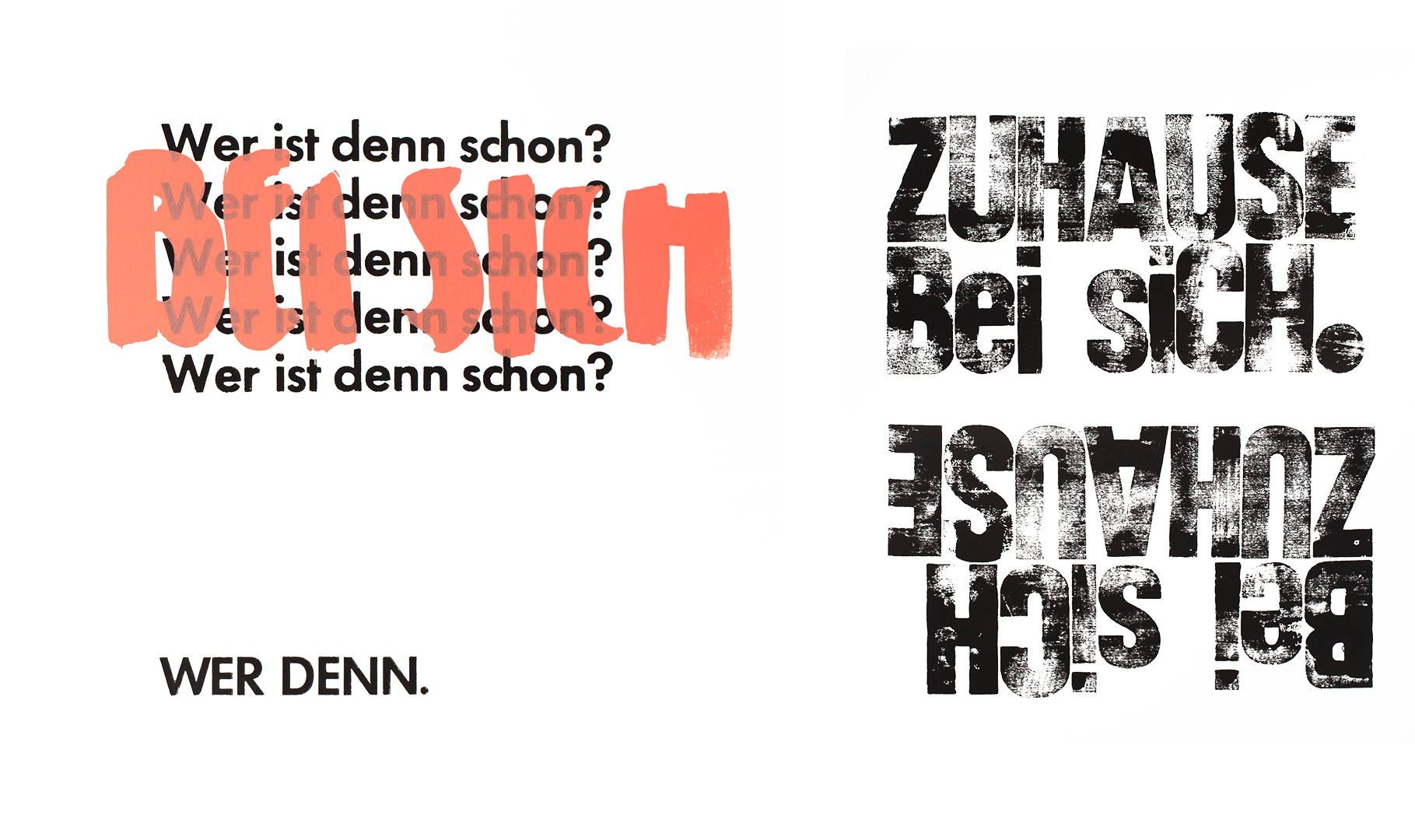 Originaldrucke als Interpretation von Elfriede Gerstls Gedicht „wer ist denn schon“ im Rahmen des Buch- und Literaturprojekts „fremdsein“. Die Arbeiten entstanden in Horn und Wien.