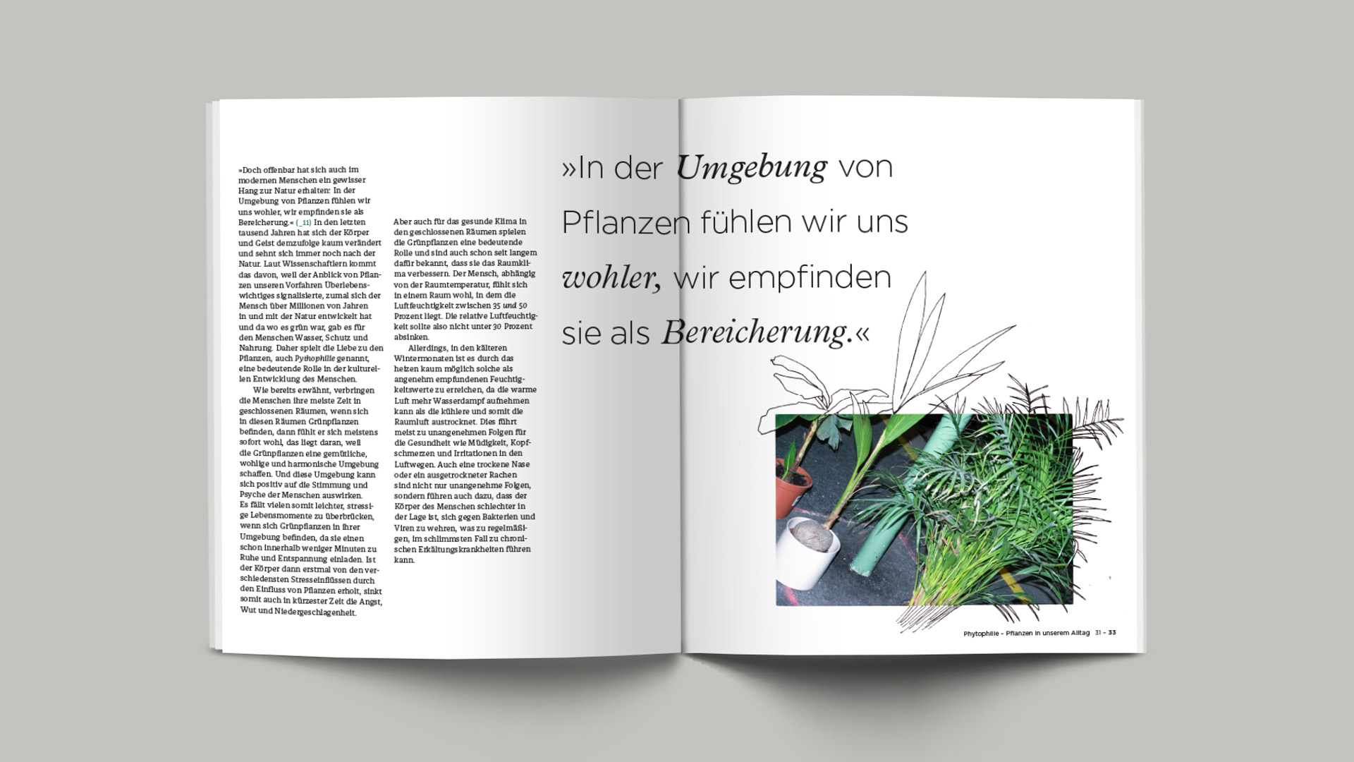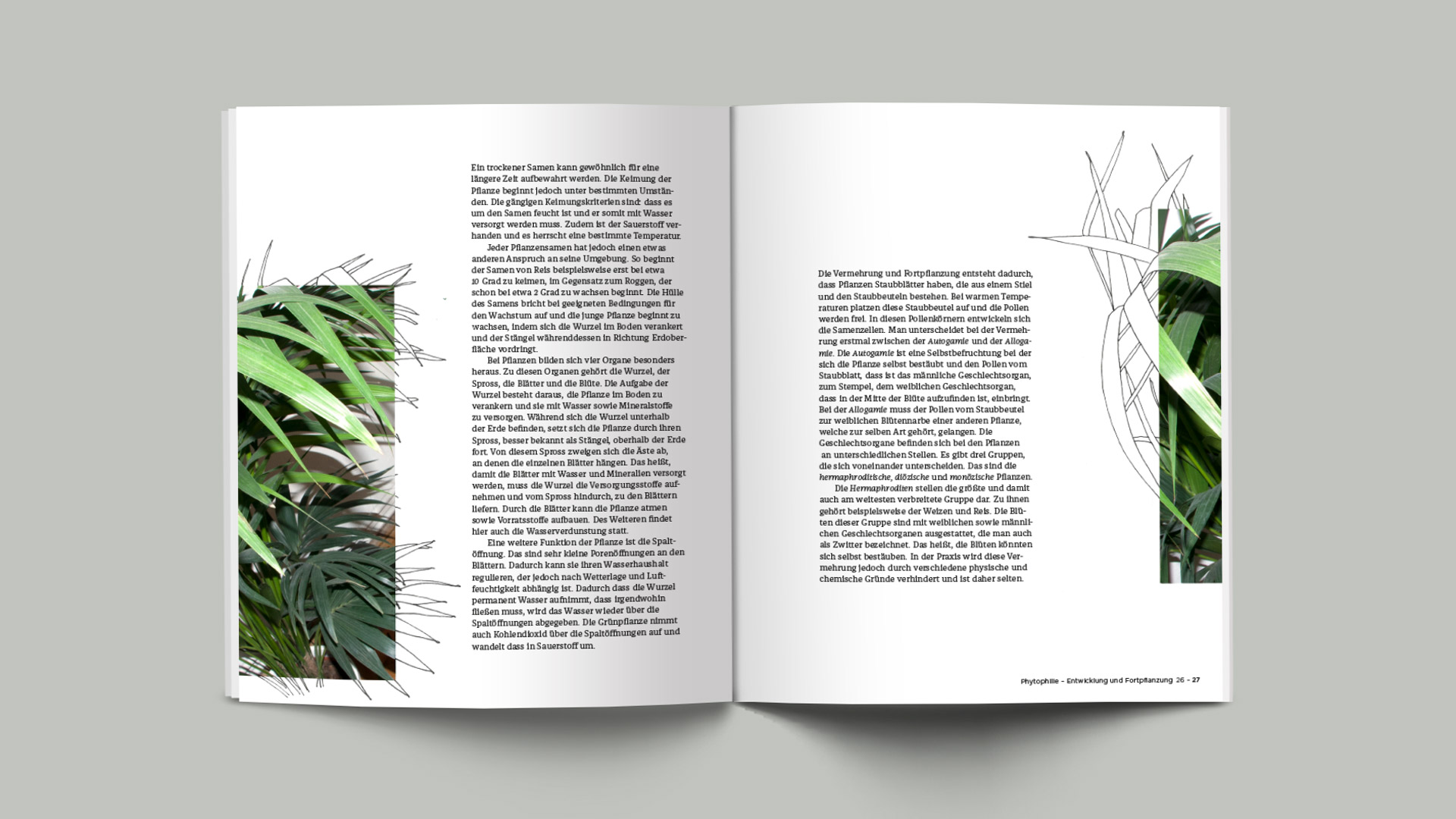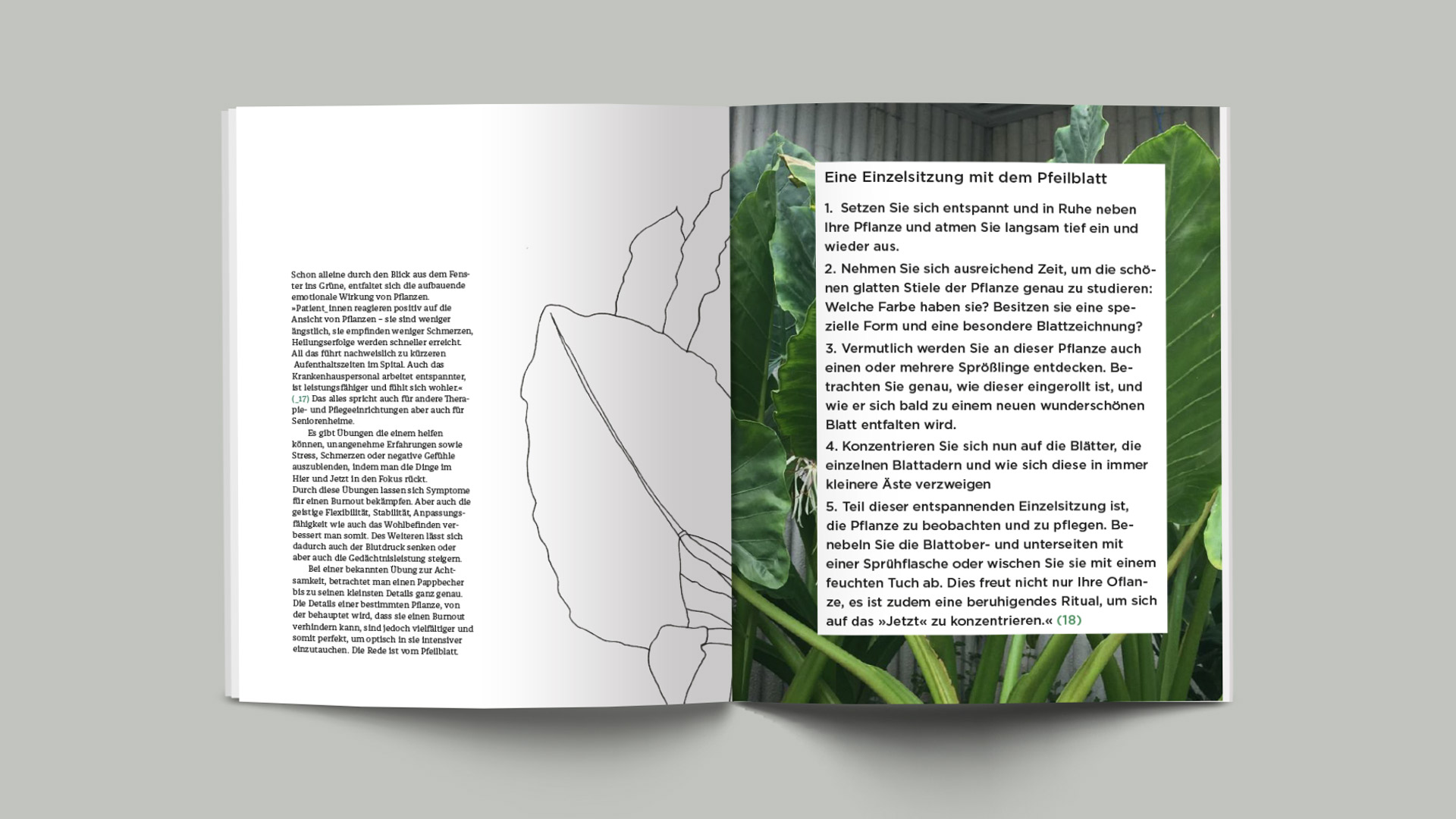 Es ist wissenschaftlich erwiesen, dass Pflanzen eine positive Wirkung auf Körper und Geist haben. Sie sehen nicht nur schön aus, sondern helfen dem Menschen auch Stress abzubauen. Sie spenden Sauerstoff, reduzieren Staub, Lärm, Schadstoffe und wirken außerdem entspannend. Mit Grünpflanzen lassen sich mehr Lebensqualität, Freude und Gesundheit in den Alltag des Menschen bringen. Daher wird die Begrünung in jeglicher Form von vielen Menschen als positives und ausgleichendes Element in ihrer Umgebung wahrgenommen und auch als Bereicherung empfunden. Kurzum: Pflanzen prägen unser Leben. Entstanden ist ein Buch, mit Fotografien und Illustrationen, dass Informationen darüber gibt, was die Pflanzen mit dem Menschen machen.