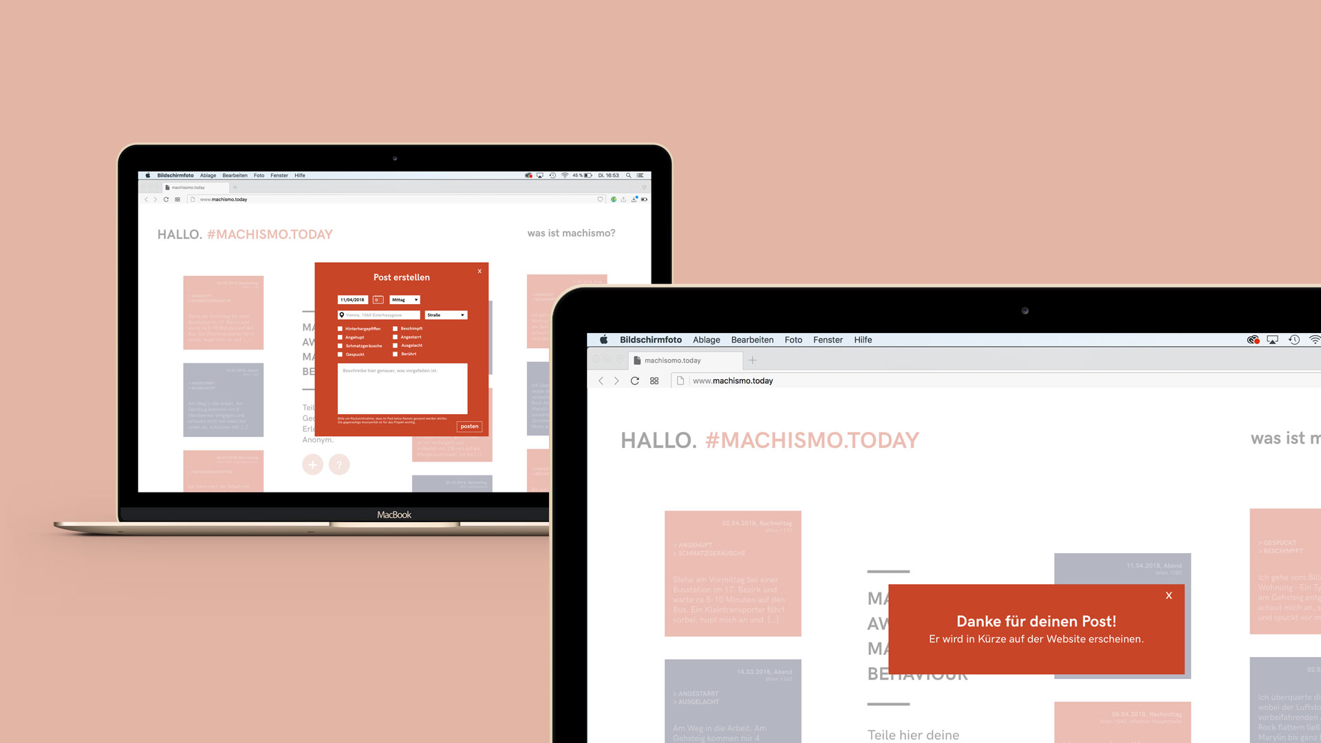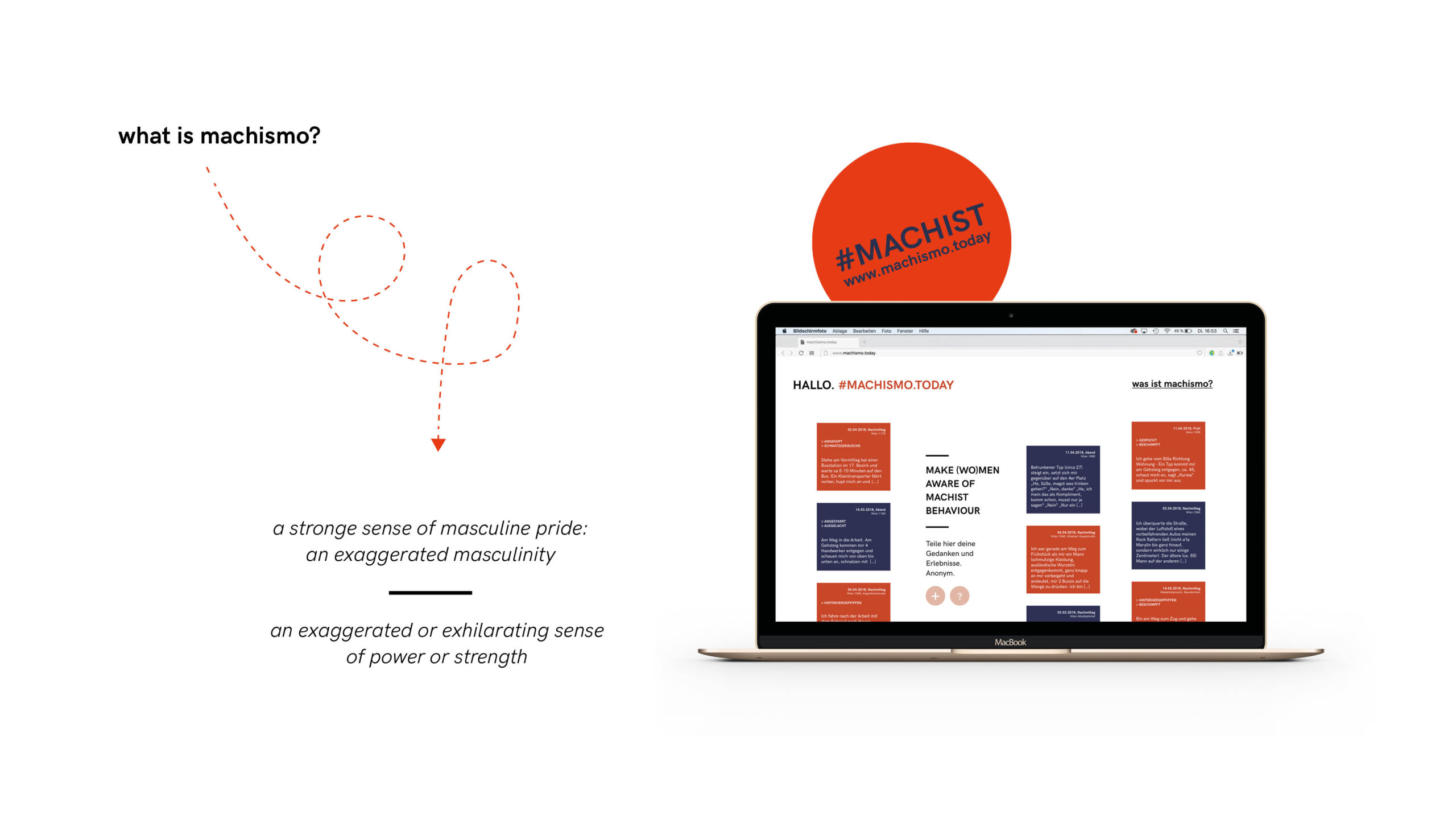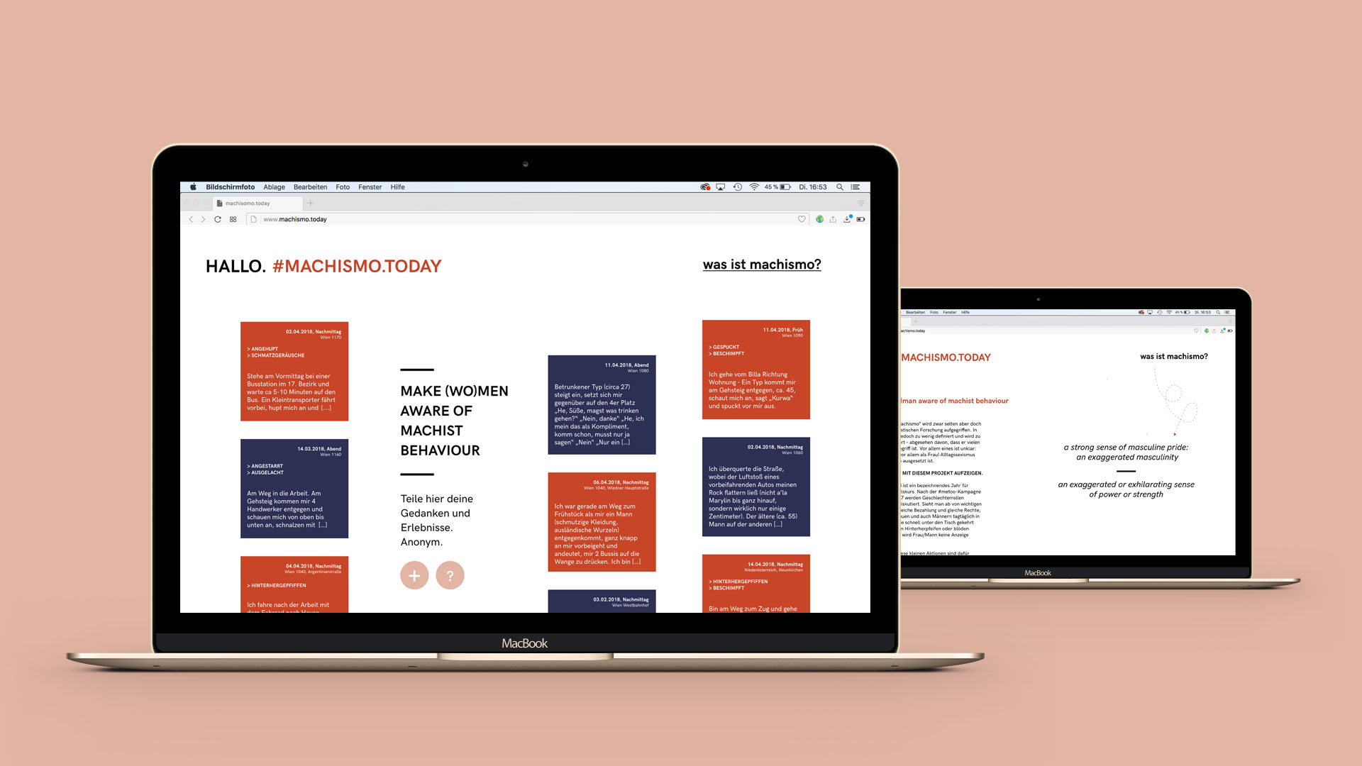 Der Begriff ›Machismo‹ wird zwar selten aber doch von der feministischen Forschung aufgegriffen. In Summe ist er jedoch zu wenig definiert und wird zu selten diskutiert – abgesehen davon, dass er vielen Leuten kein Begriff ist. Vor allem eines ist unklar: Wie oft man (vor allem als Frau) Alltagssexismus und Machismo ausgesetzt ist. Entstanden ist eine Website, auf der die Nutzerin/der Nutzer direkt und anonym Vorfälle posten kann.