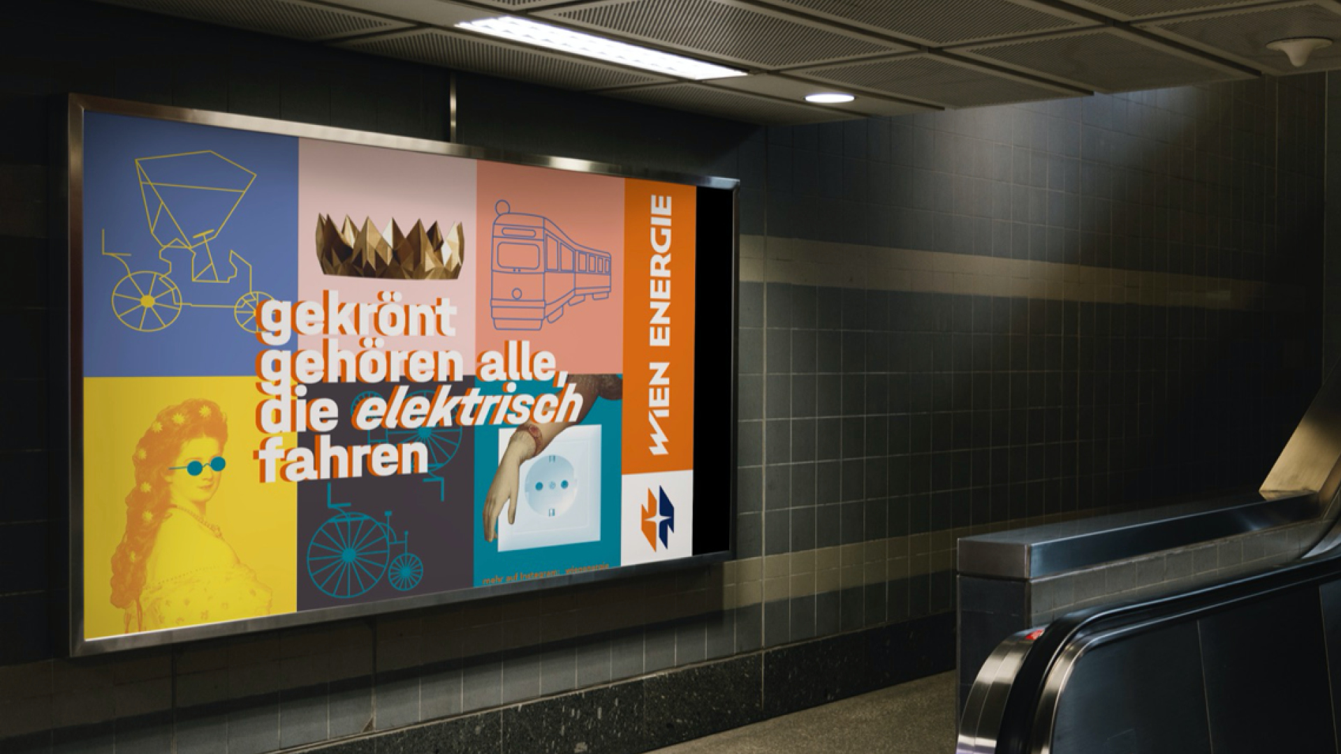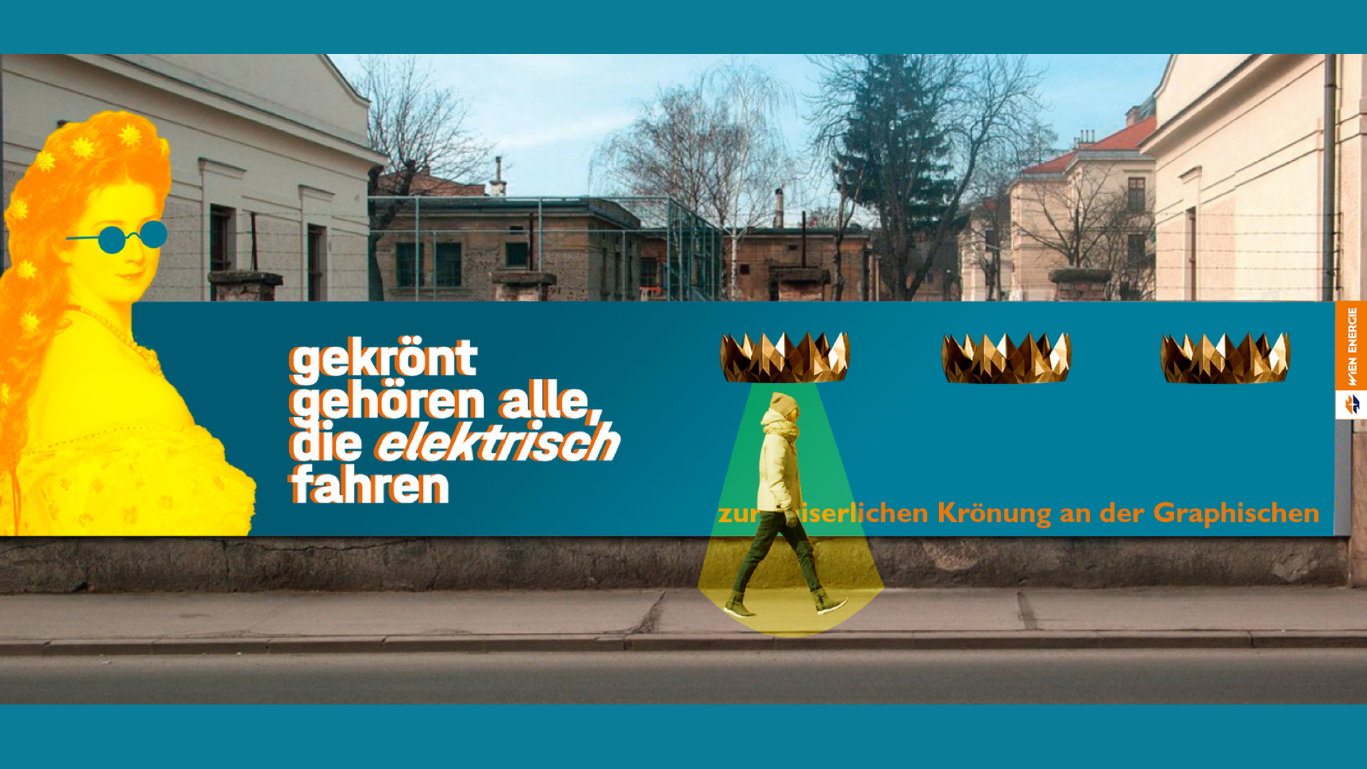 Die Werbekampagne von Nicole Heidegger und Lara Studer, mit dem Thema Elektromobilität, vereint Geschichte mit Innovation. Der Leitgedanke des entwickelten Konzeptes ist: Wer gute Taten für die Umwelt vollbringt, wird gekrönt und belohnt. Das zur Kaiserzeit entstandene Elektrodreirad ist das erste Fahrzeug, das mit dem Konzept der Elektromobilität entwickelt wurde. Die Kaiserzeit wird durch die Werbekampagne wiederbelebt. Wien Energie bildet die kaiserliche Residenz und sucht UmweltheldInnen, die auch zur Kaiserfamilie gehören wollen. Sissi ist das neue Gesicht von Wien Energie und möchte ihre kaiserliche Familie erweitern. Umweltbewusste ElektrofahrerInnen werden für ihre guten Taten gekrönt. Alle Wien Energie KundInnen, die elektrisch fahren und tanken, können durch die Vorteilsapp Kronen-Punkte sammeln und erhalten dadurch viele Ermäßigungen für Freizeitaktivitäten und Ähnliches.