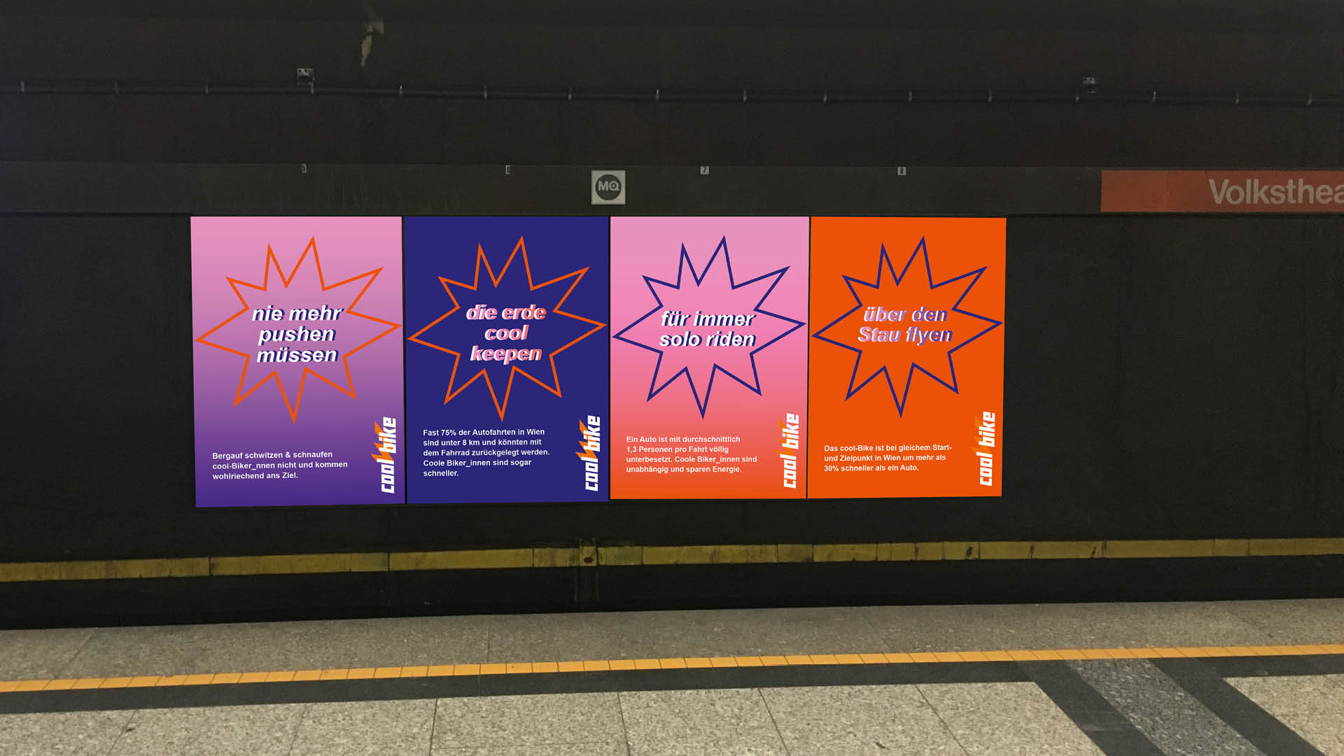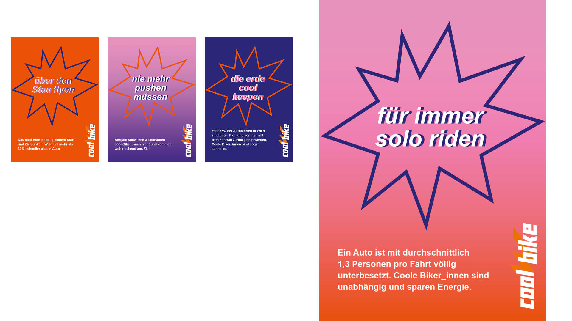 Wien Energie ist Österreichs Vorreiter wenn es um e-mobility geht. Dass es dabei jedoch nicht nur um die aktuell medienstarken Elektroautos geht, sondern weit mehr Fahrzeuge mit elektrischer Energie versorgt werden, war der Fokus dieser Kampagne. Für den stark belasteten Autoverkehr in Wien wurde als Alternative die Idee eines e-Bike-Verleihs geboren. Diese können auf Durchschnittsstrecken gleich gute oder bessere Fahrzeiten einhalten. Die Kampagne soll besonders eine junge Zielgruppe ansprechen, welche derzeit geprägt durch die sozialen Medien hervorgerufene Kreativität und Selbstinszenierung auf allgemein als nicht ästhetisch wahrgenommene Trends setzt. – mit Sarah Zublasing