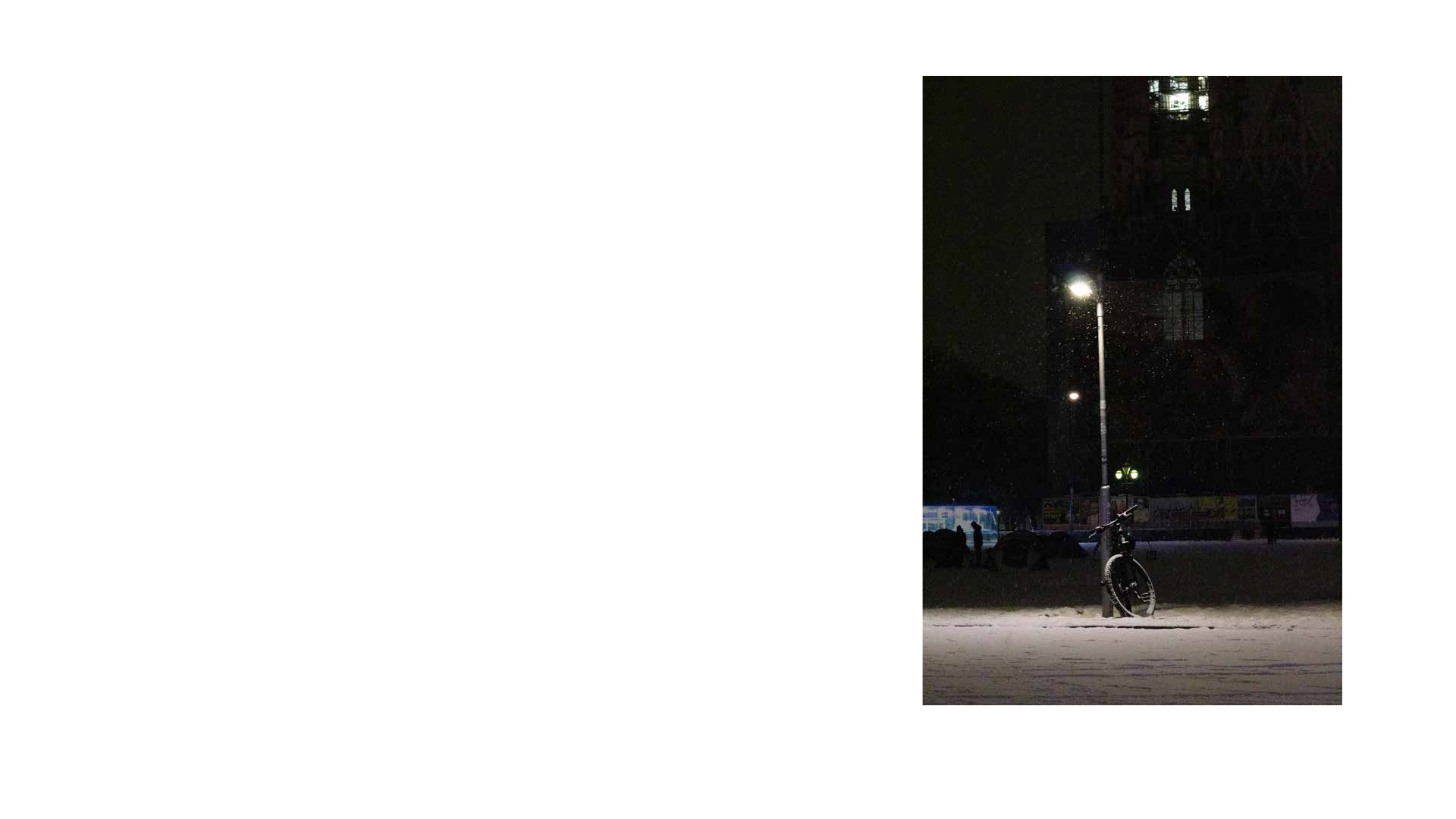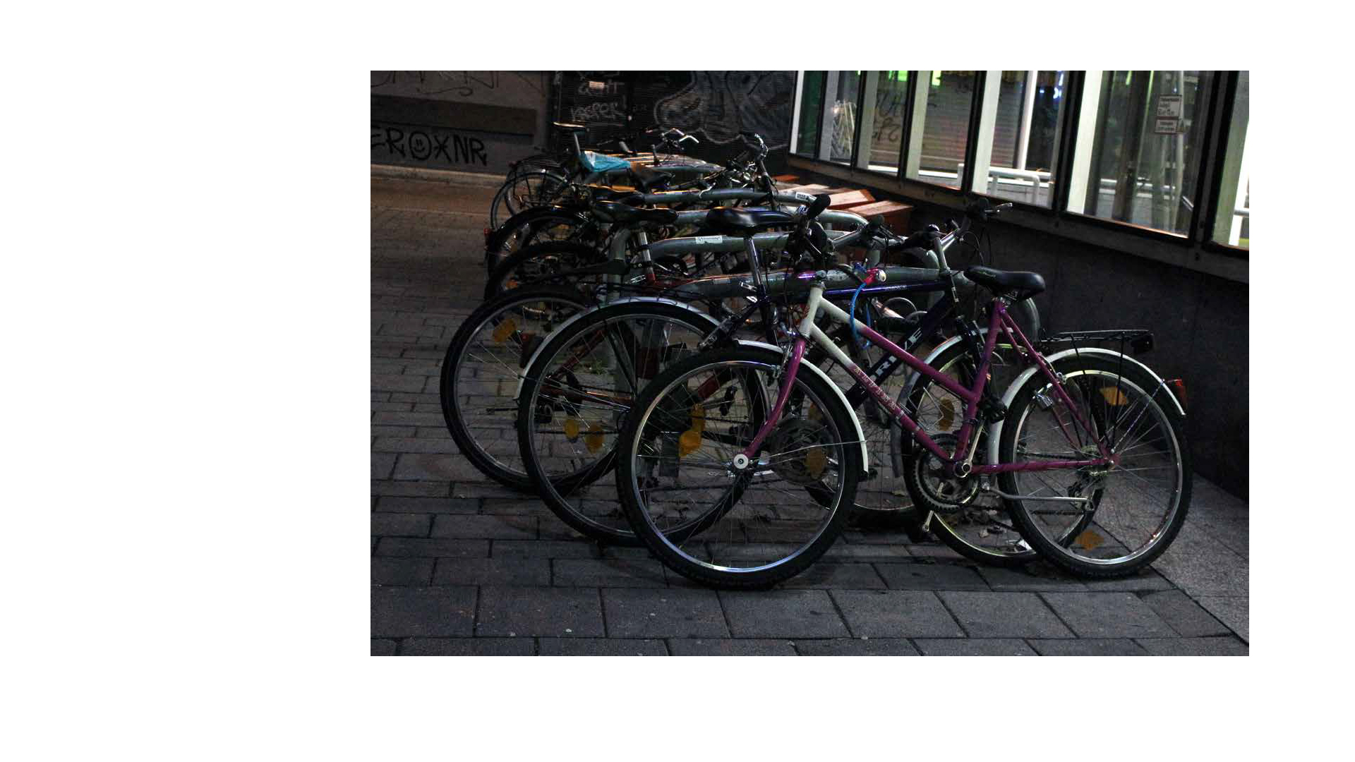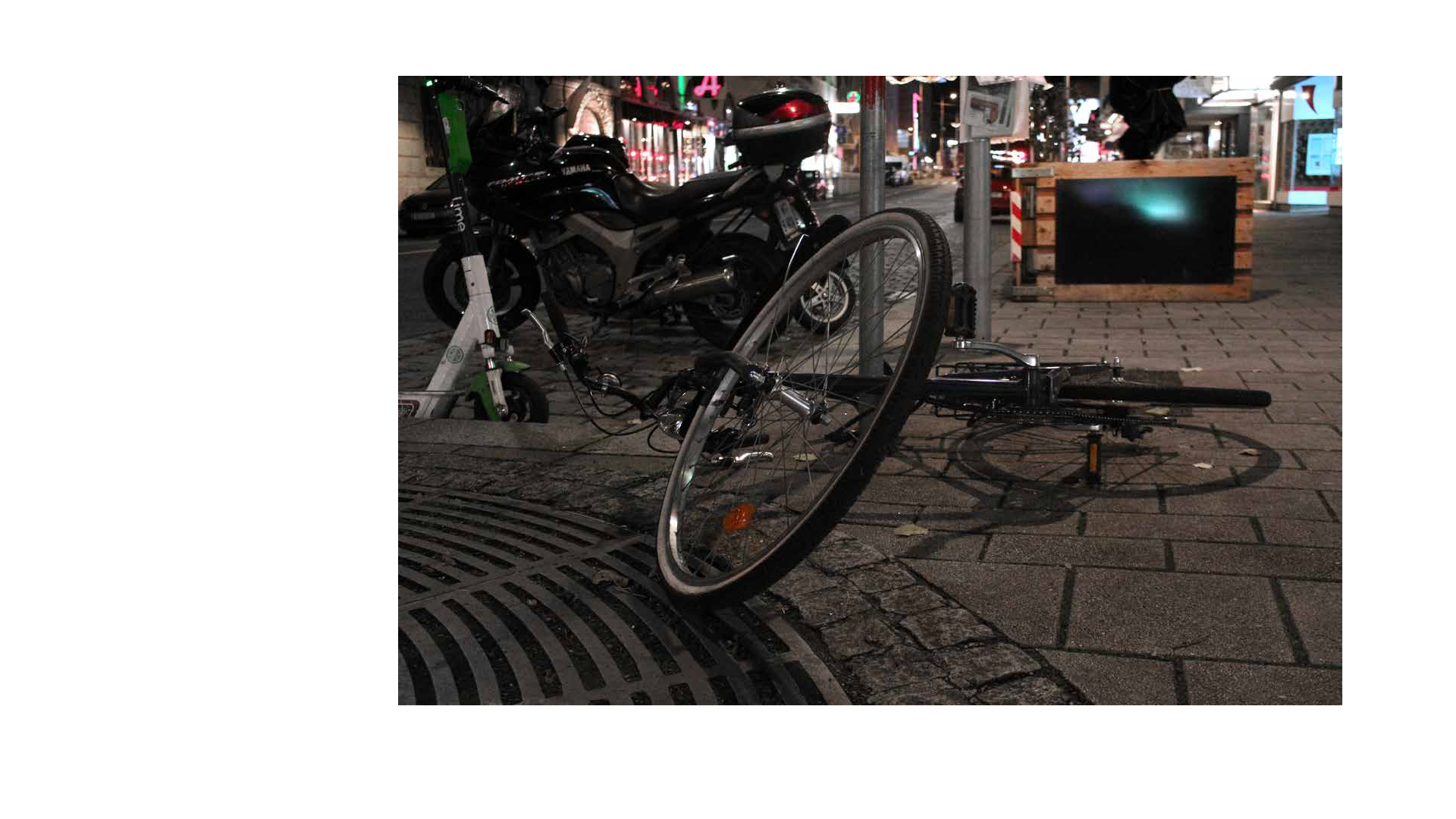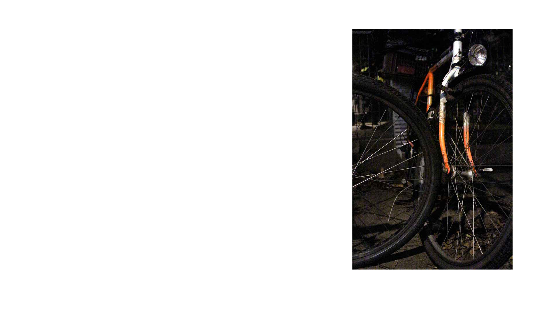 Im Jahre 2020/21 ist der ganzen Welt das Schicksal einer Pandemie widerfahren. Auch die einst pulsierende Hauptstadt stand still. Sportanlagen wurden geschlossen und öffentliche Verkehrsmittel gemieden, um körperliche Kontakte einzuschränken. Diese Maßnahmen ließen die Menschen wieder zunehmend auf das Fahrrad steigen. Diese Fotoserie dokumentiert die nachts auf den Straßen stehenden Fahrräder. Der Grundgedanke dieses Projekts ist es, die verlassenen Räder selbst ihre Geschichte erzählen zu lassen.