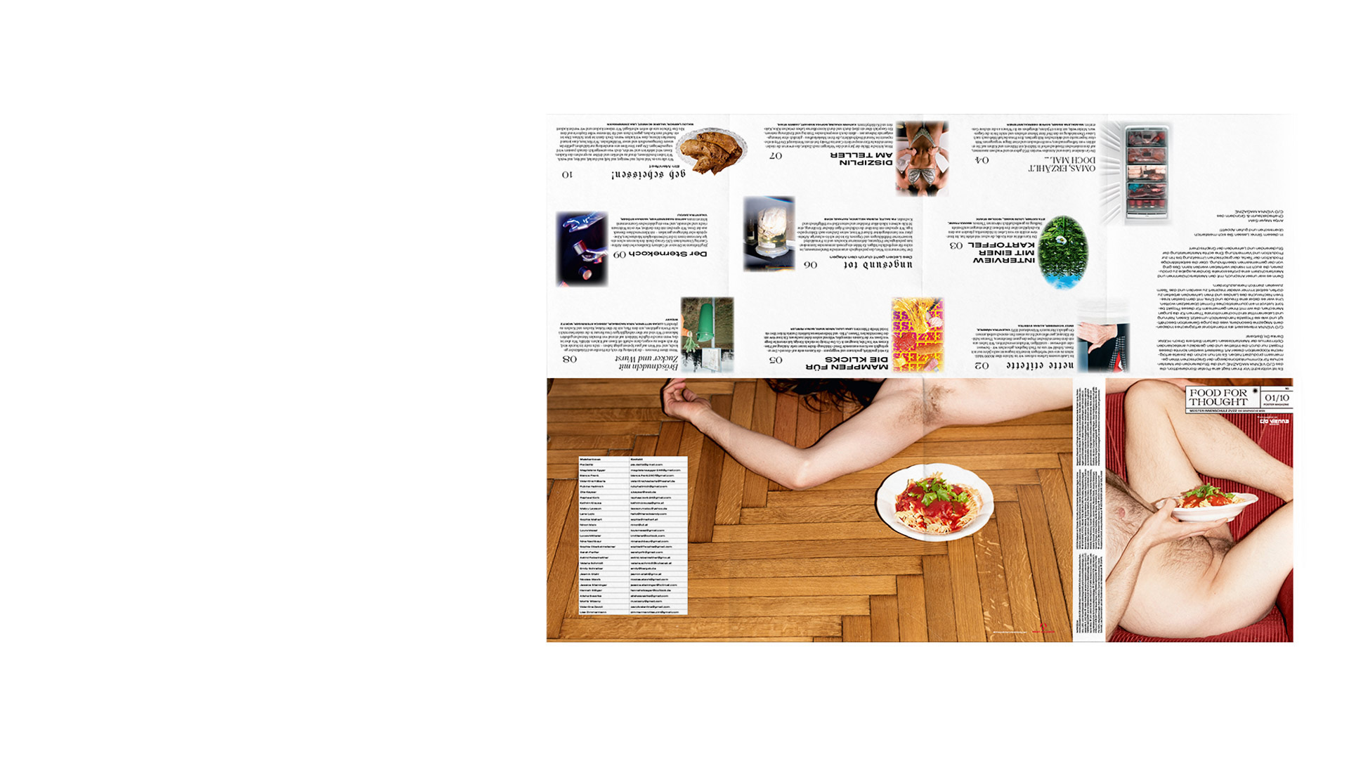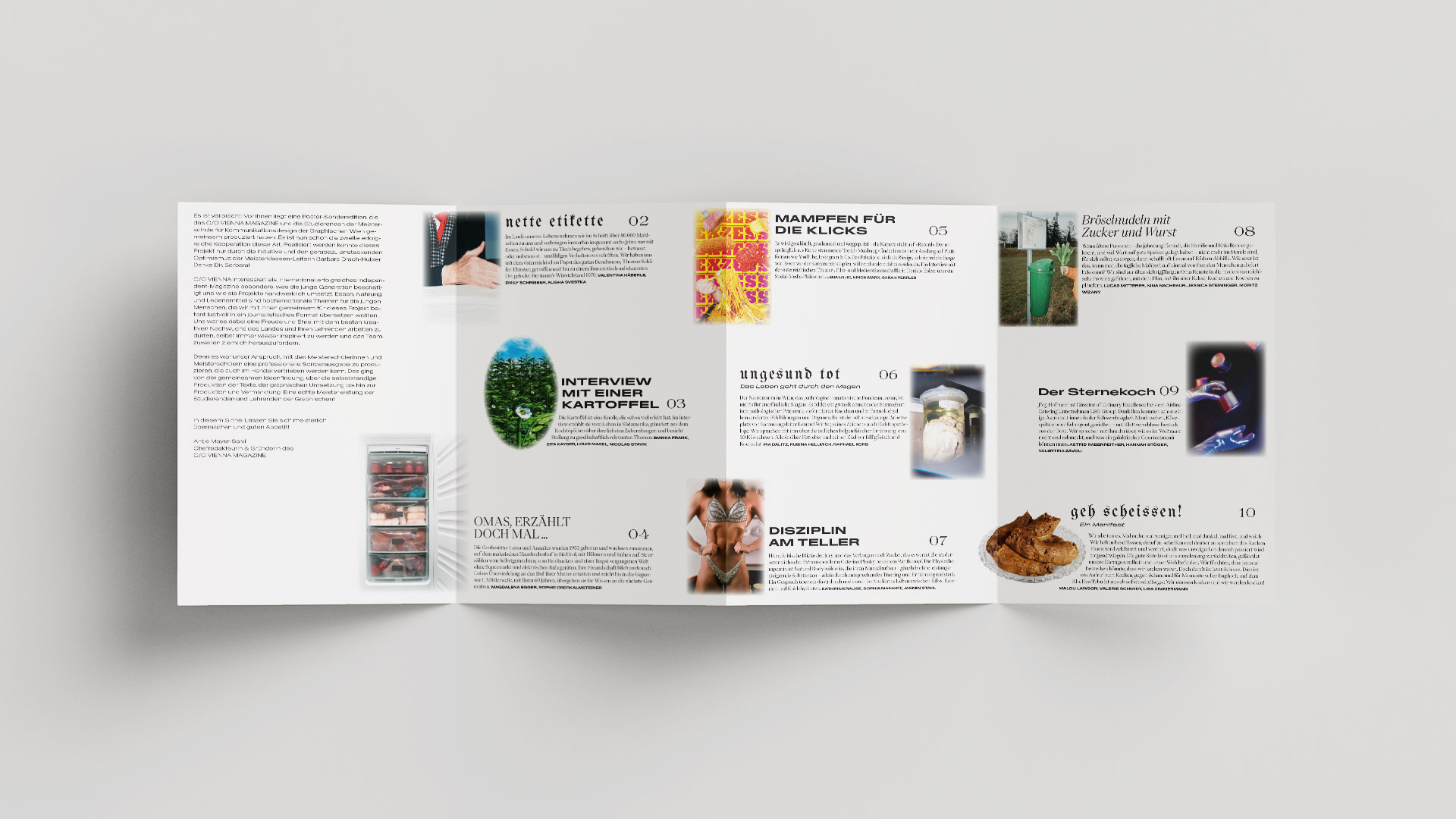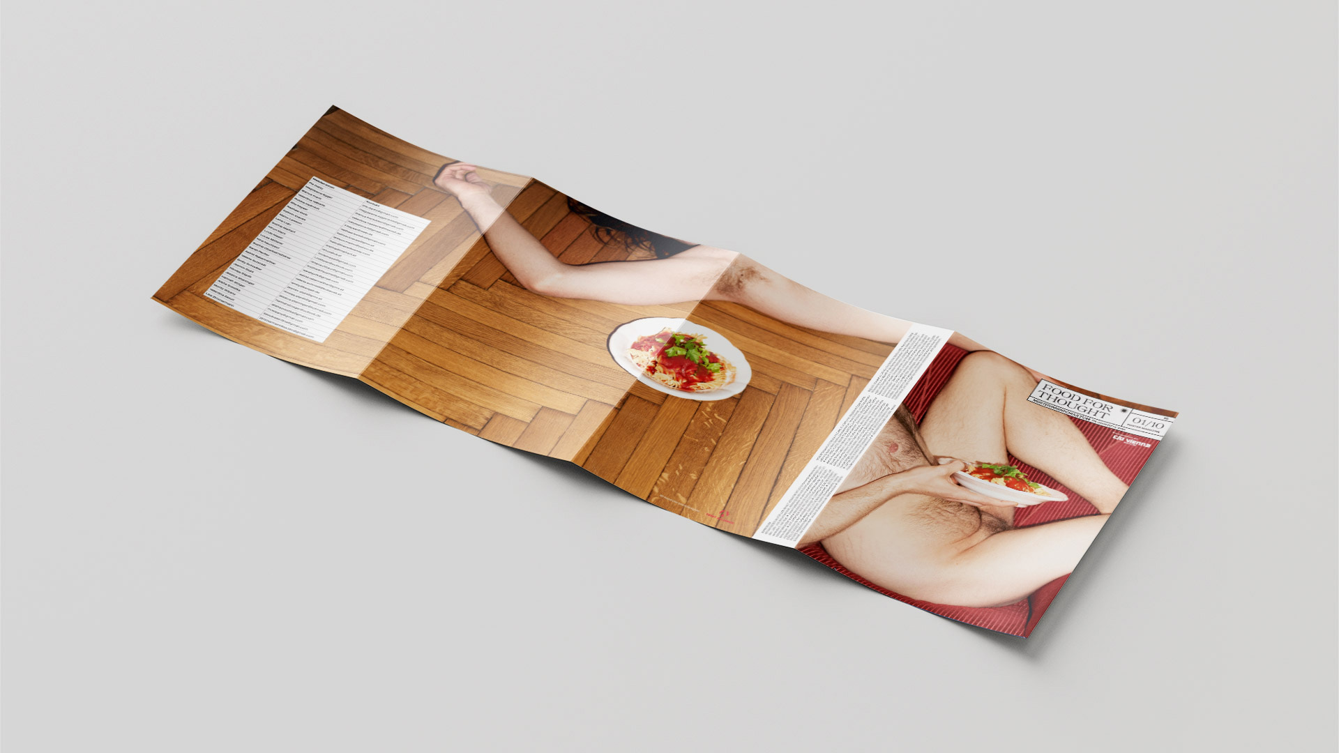 Für die neue Ausgabe des C/O VIENNA Magazins haben wir ein neues journalistisches Format entwickelt: das Poster Magazine, welches sich dem lustvollen (FR)ESSEN widmet. Als schmackhafte ›Beilage‹ wurden neun verschiedene Plakate mit interessanten Interviews und zahlreichen Fotos entwickelt. Dafür waren die Meister·innen mit Thomas Schäfer-Elmayer (dem österreichischen Papst des guten Benehmens) eine Bosna essen, fotografierten Fettlebern im Narrenturm und sahen sich Fressorgien auf YouTube an. Ein Sneak Peek der neun Plakate ist auf dem Hauptplakat zu finden, auf dem die Verschränkung von Körperlichkeit und Essen in einem dekadenten Rahmen abgebildet wird. Zusätzlich wurden Merchandising-Produkte designed (von Valerie Schmidt) und eigenständig auf verschiedensten Kleidungsstücken mittels Siebdruck Technik bedruckt und zum Verkauf bereitgestellt. — mit Pia Dalitz Magdalena Egger, Sophie Oberkalmsteiner, Valerie Schmidt und Lisa Zimmermann