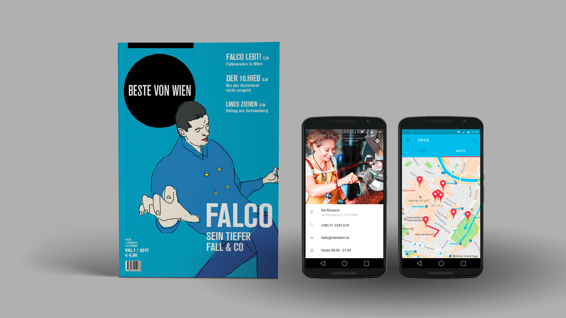Redesign des Magazins ›Best of Vienna‹. ›Relevante Inhalte für den Leser‹ ist der Grundstein des Falter-Verlags. Was der Leser bereits kennt hat für ihn keine Relevanz. Für das Redesign wurde dieser Leitgedanke auch in den neuen Medien konsequent umgesetzt. ›Die umgekehrte Filterblase‹ Über eine App werden die Geodaten des Lesers gesammelt. Die Aufenthaltsorte des Stadtbewohners werden als Ausschlusskriterien auf die georeferzierten Inhalte des Magazins angewendet. Der Abonennt erhält ein personalisiertes Magazin, dass ihn die Stadt ausserhalb seiner gewohnten Ruten erleben lässt. Für Touristen und andere Nicht-Abonennten werden die Geodaten genutzt um örtlich relevante Städtetipps in Echtzeit in der App zu präsentieren. Im Magazin für Nicht-Abonennten wird Wien jeweils aus der Sicht einer wiener Persönlichkeit portraitiert.