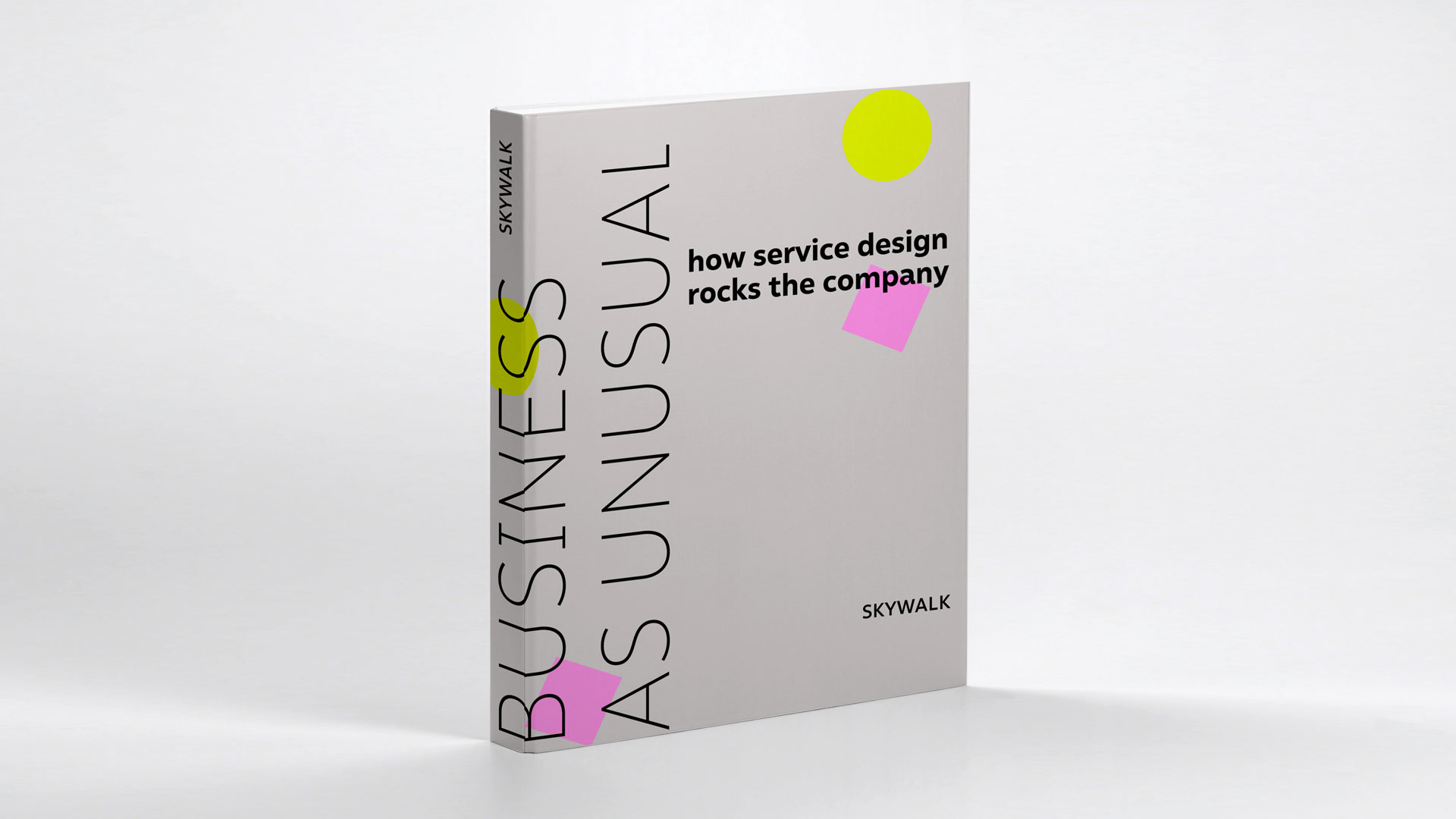 Corporate Design für Skywalk, ein Start-Up für Service Design. Der wesentliche Touchpoint von Skywalk sind ihre Workshops in Unternehmen. So ein Workshop ist schnell und intensiv. Es wird hauptsächlich mit Post-its gearbeitet. Die Ästhetik der neonfarbenen Post-Its aus den Workshops wurde als Grundlage für die Gestaltung des Corporate Designs genutzt. Zusammen mit Bernhard Poppe und der Software Nodebox wurden unterschiedliche Layouts für das Corporate Design generiert