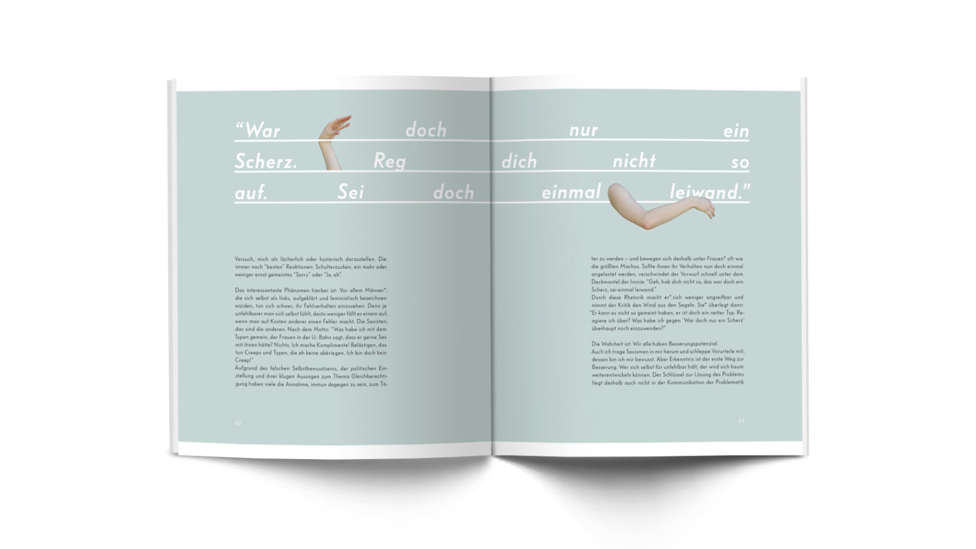 ›Wer sich für unfehlbar hält, der kann sich auch nicht weiterentwickeln.‹ Wir alle leben und handeln nach Mechanismen, die uns größtenteils nicht bewusst sind. Was muss ein Mann tun? Wie muss eine Frau sich verhalten? Und, was heißt eigentlich müssen? Sexistische Verhaltensmuster prägen unseren Alltag, unser Sozialverhalten, unsere Beziehungen. Höchste Zeit, das zu ändern.