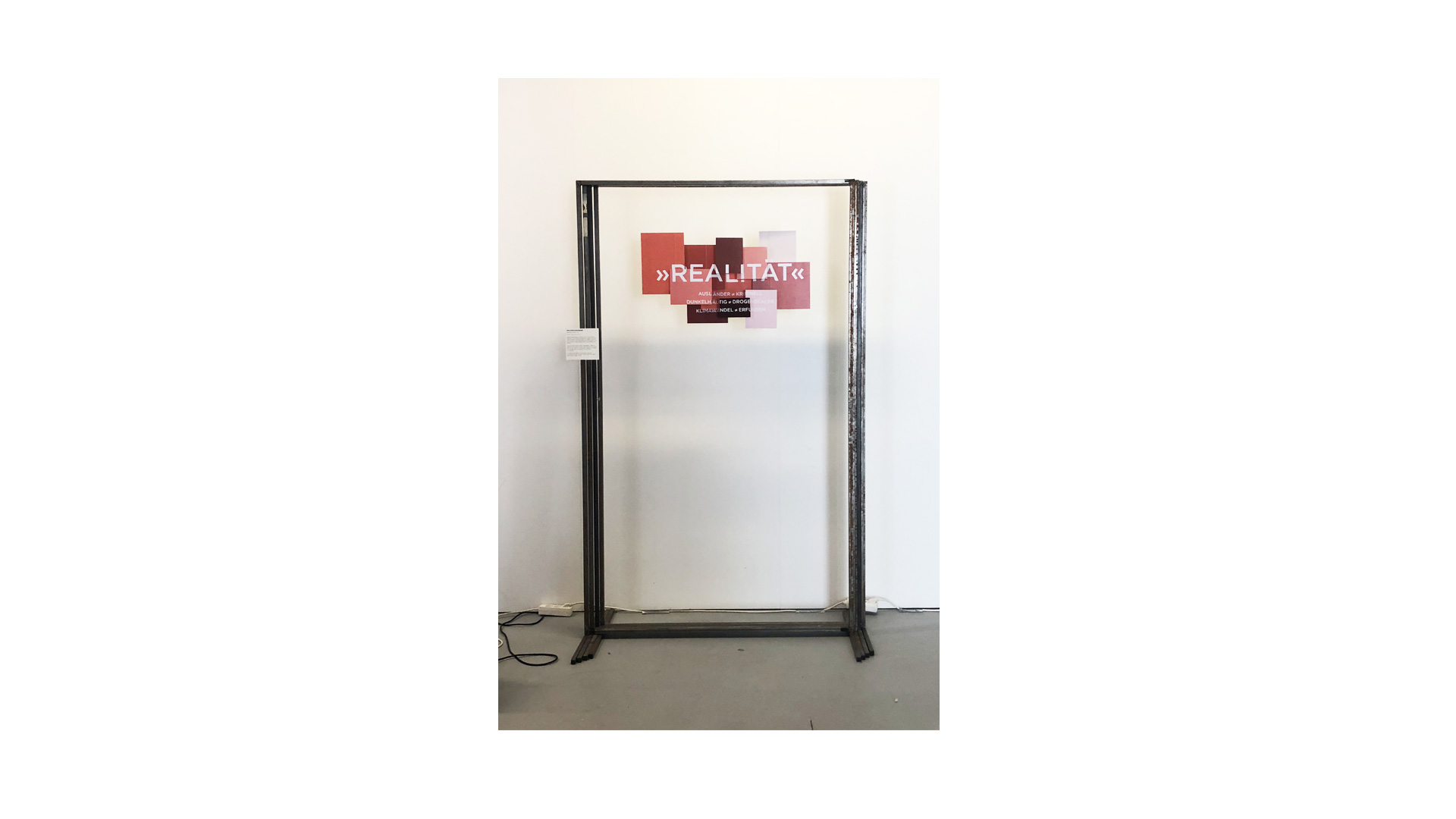 Manchen geht es weniger darum, sich mithilfe möglichst vieler Fakten der Wahrheit zu nähern, denn sie suchen lediglich nach Bestätigung der eigenen Vorurteile oder nach der scheinbaren Bestätigung eines Gerüchts, von dem sie gerne glauben möchten, dass es der Wahrheit entspricht. So verzerrt das Denken in Vorurteilen nicht nur die Wahrnehmung der Realität, es kann Vorurteile sogar Wirklichkeit werden lassen. Die Installation ist nur an einem Punkt klar zu erkennen und niemand sonst erkennt seine Realität. Die verschiedenen Ebenen sollen auf die Verschiedenen Realitäten hinweißen.