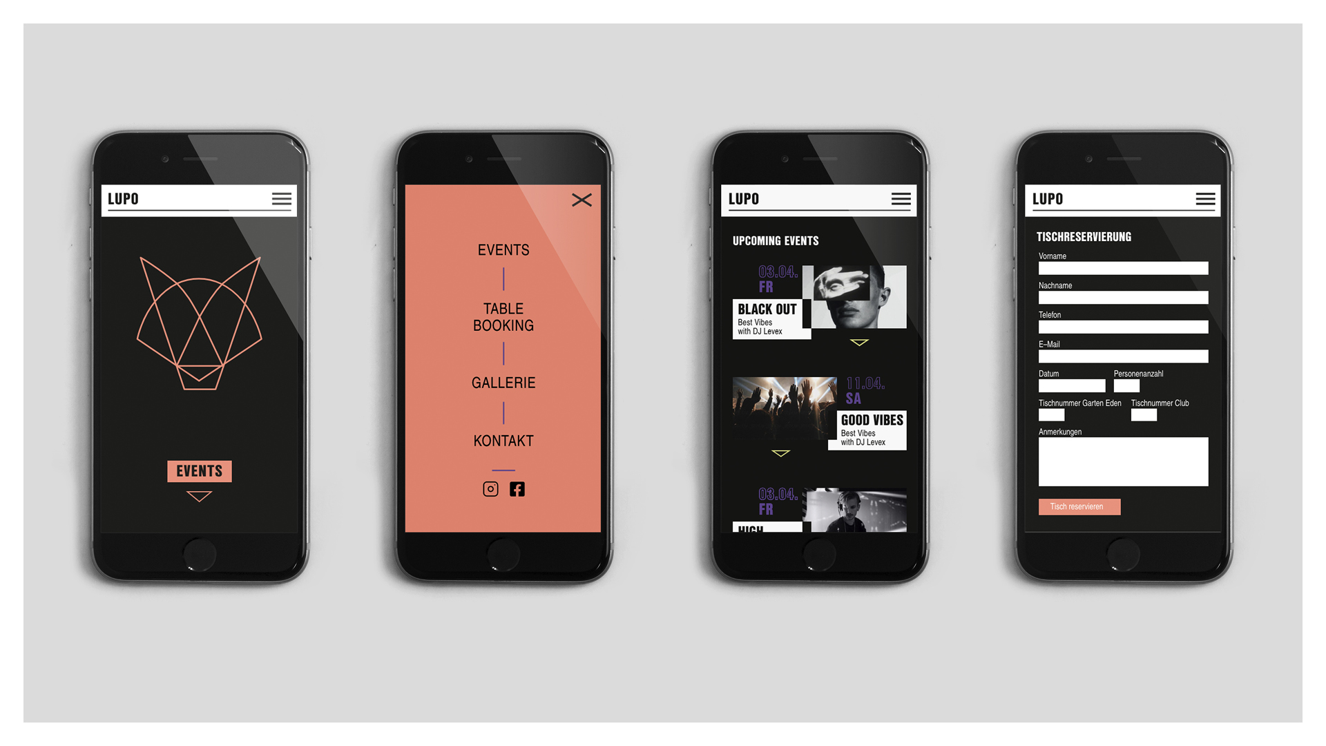 Für einen Nachtclub in Wiener Neustadt sollte ein neues Corporate Design entwickelt werden. Der neu entwickelte Name ›Lupo‹, welcher sich aus dem Italienischen für ›Wolf‹ herleitet, soll das Familienunternehmen hinter dem Nachtclub, welches sich selbst mit einem Wolfsrudel vergleicht, unterstreichen.