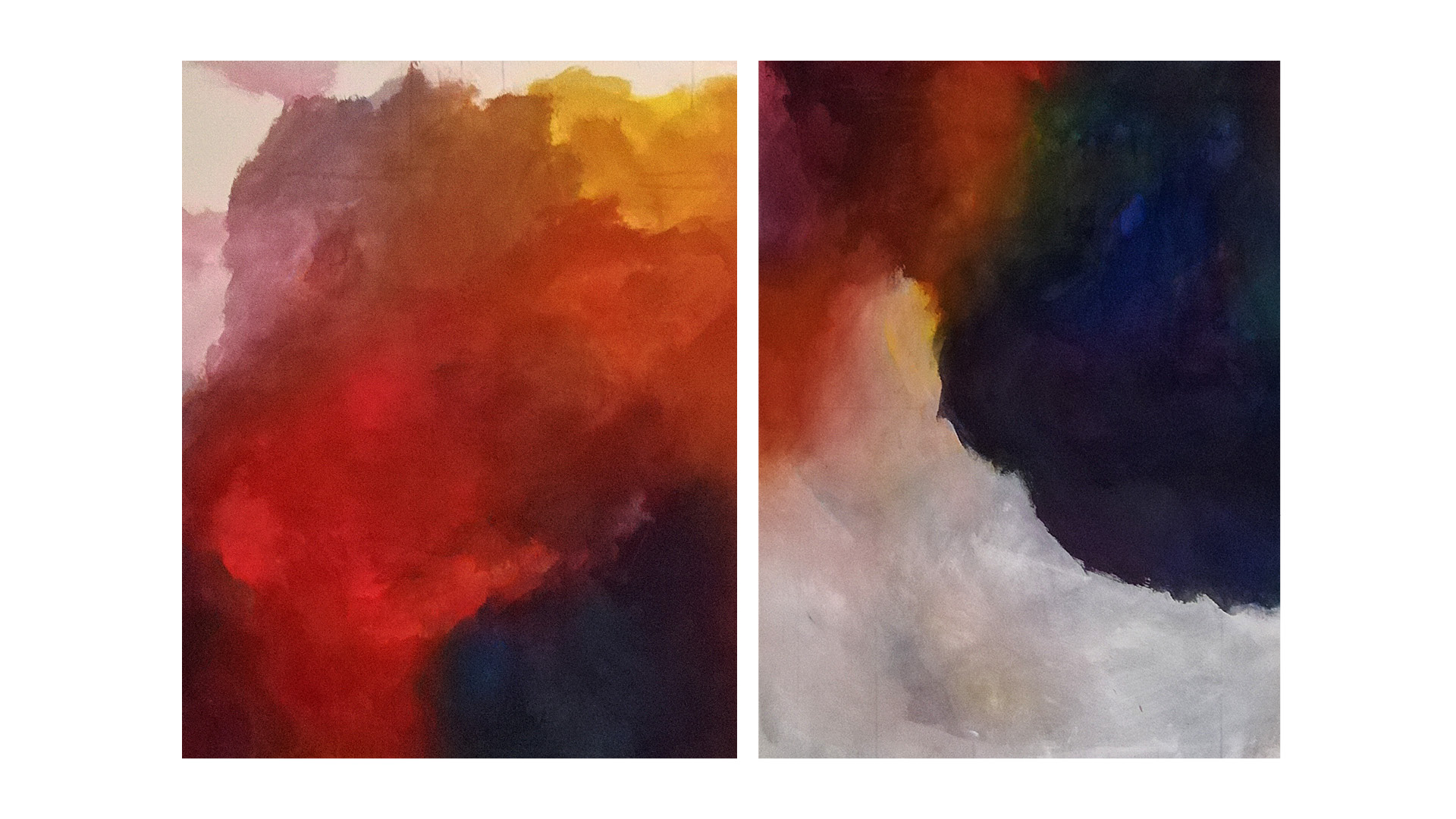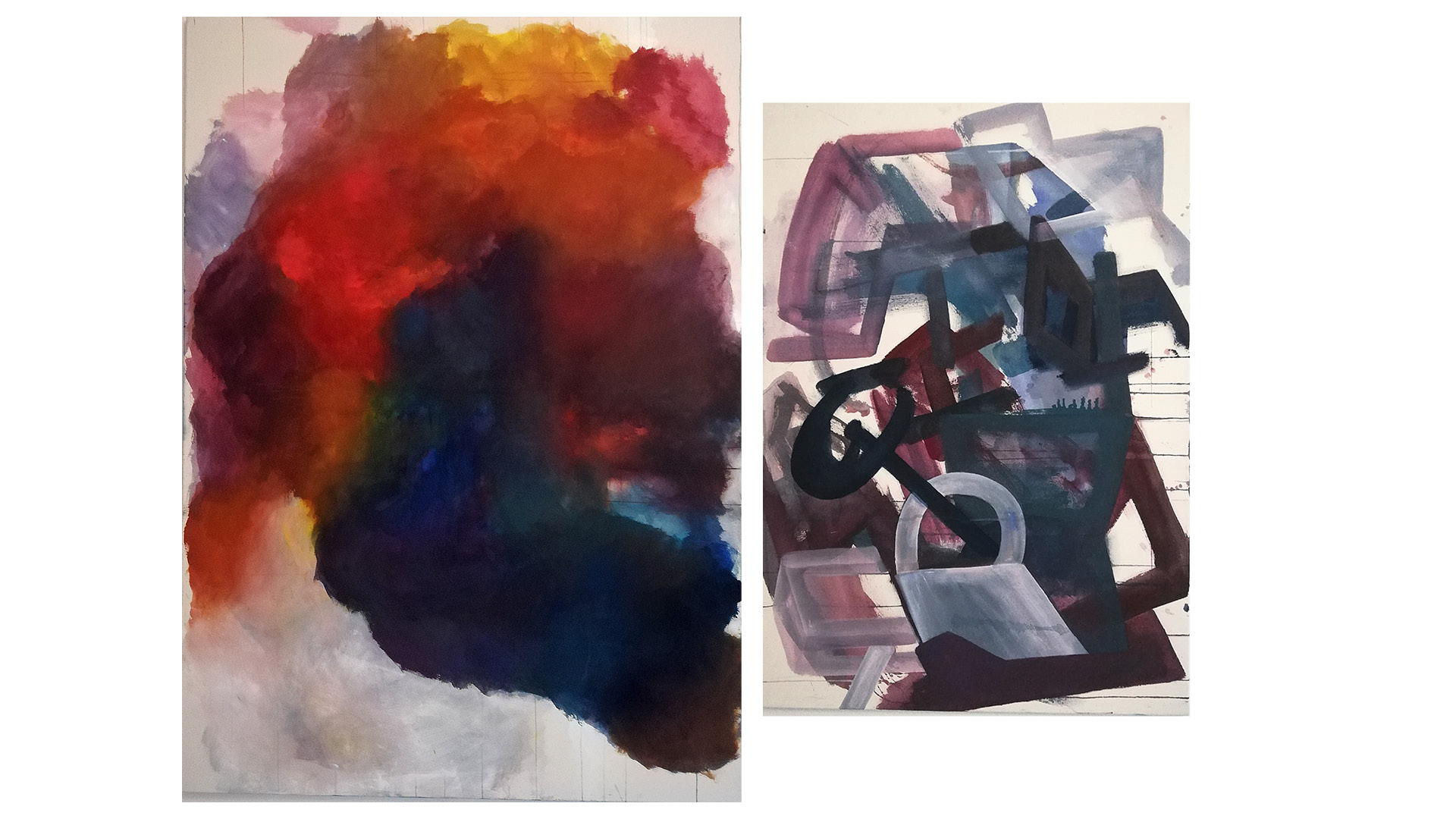 Im ›DRZ‹ sind einige Skizzen entstanden. Die erste Leinwand hat das Format 85 x 110 cm und die zweite 70 x 100 cm.