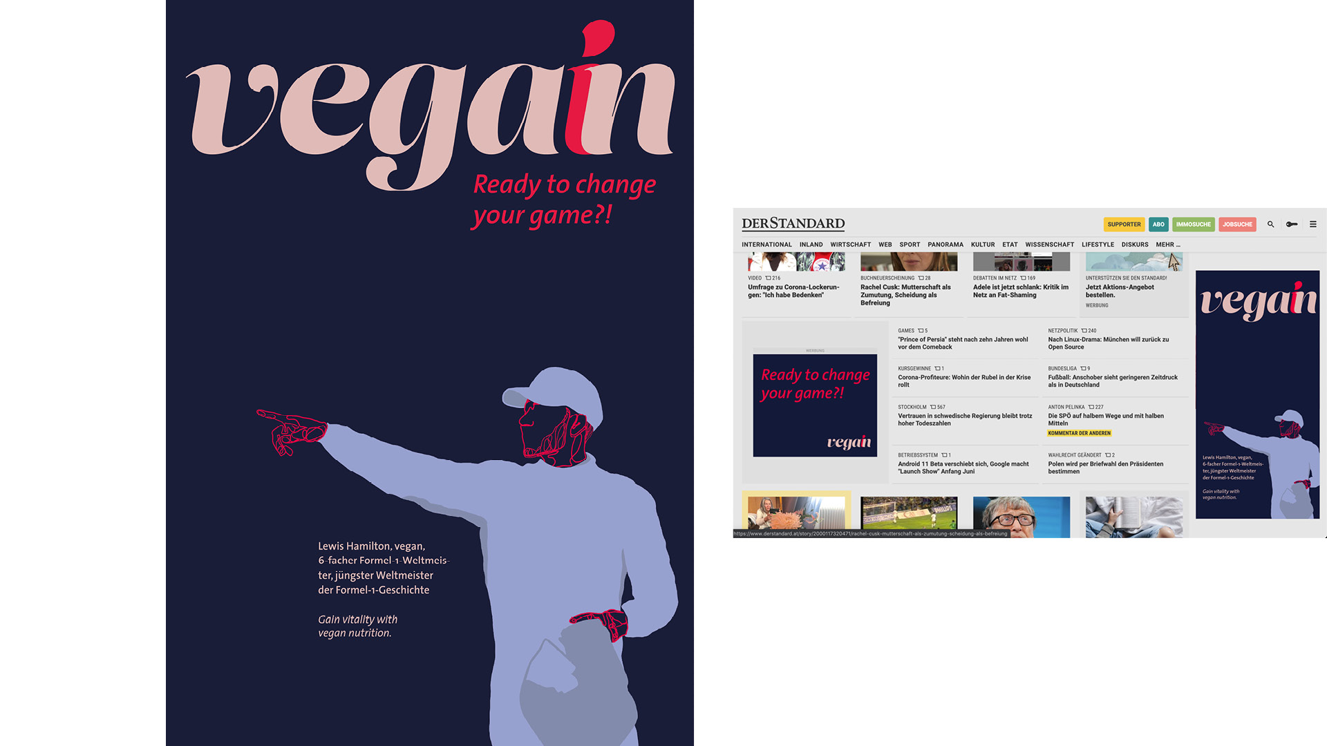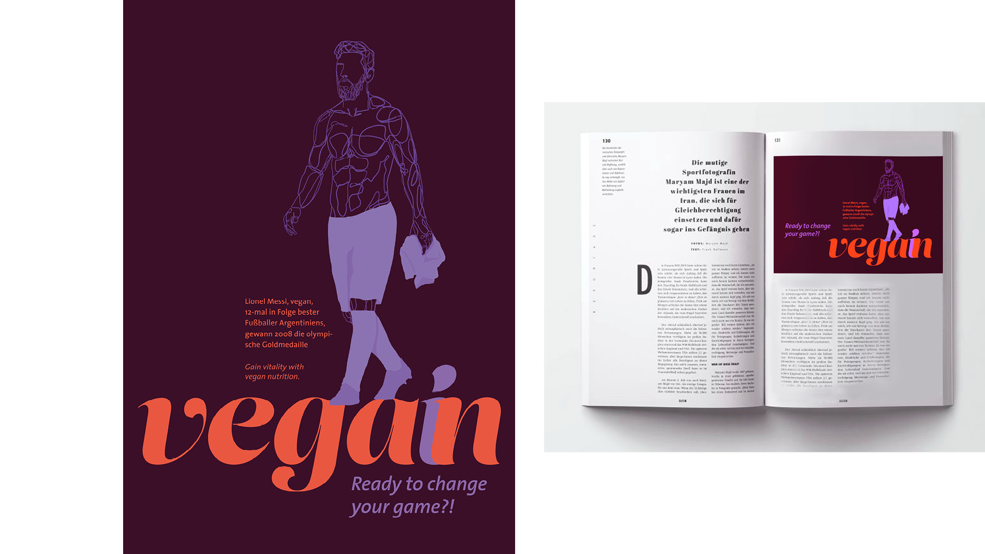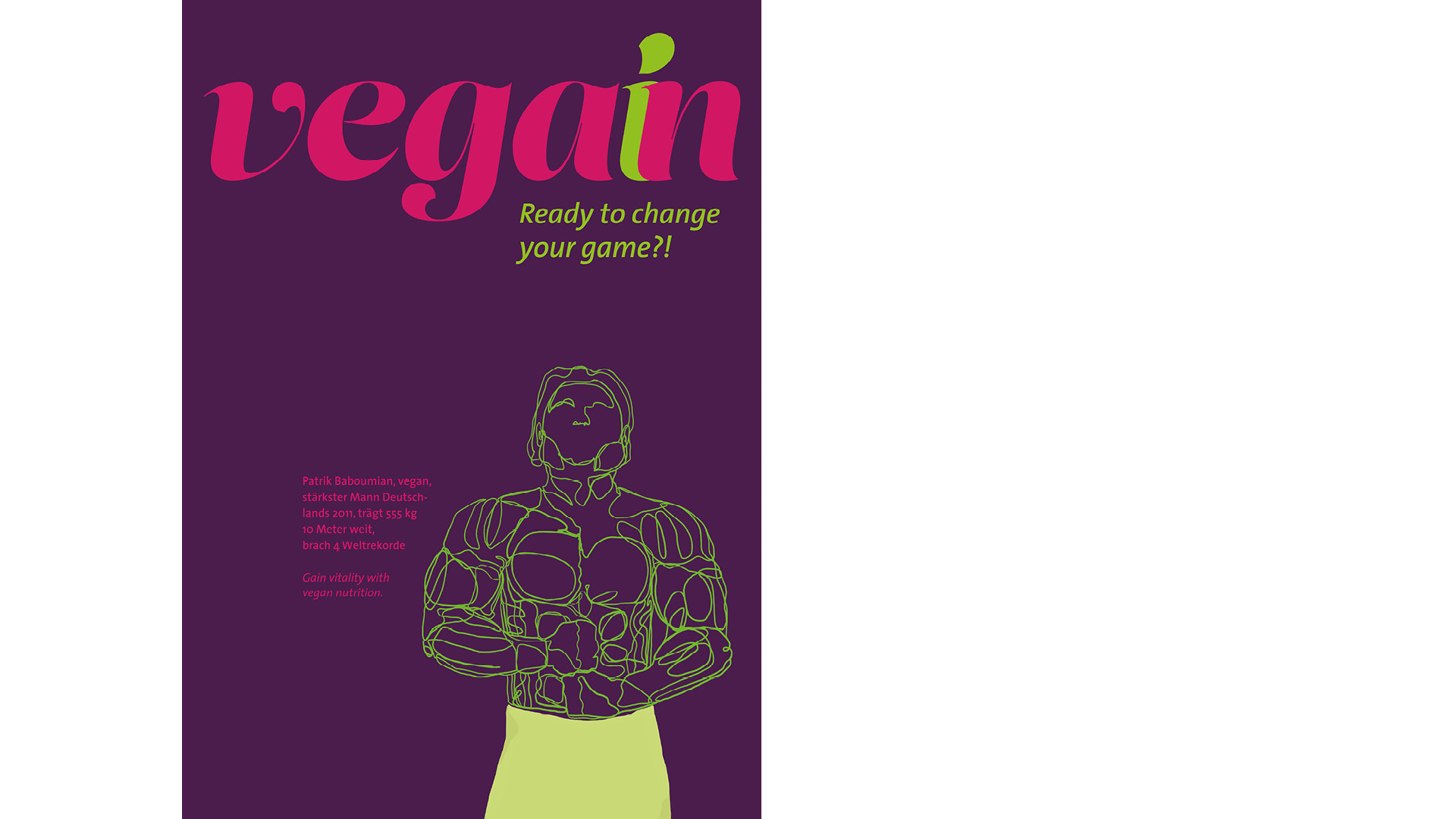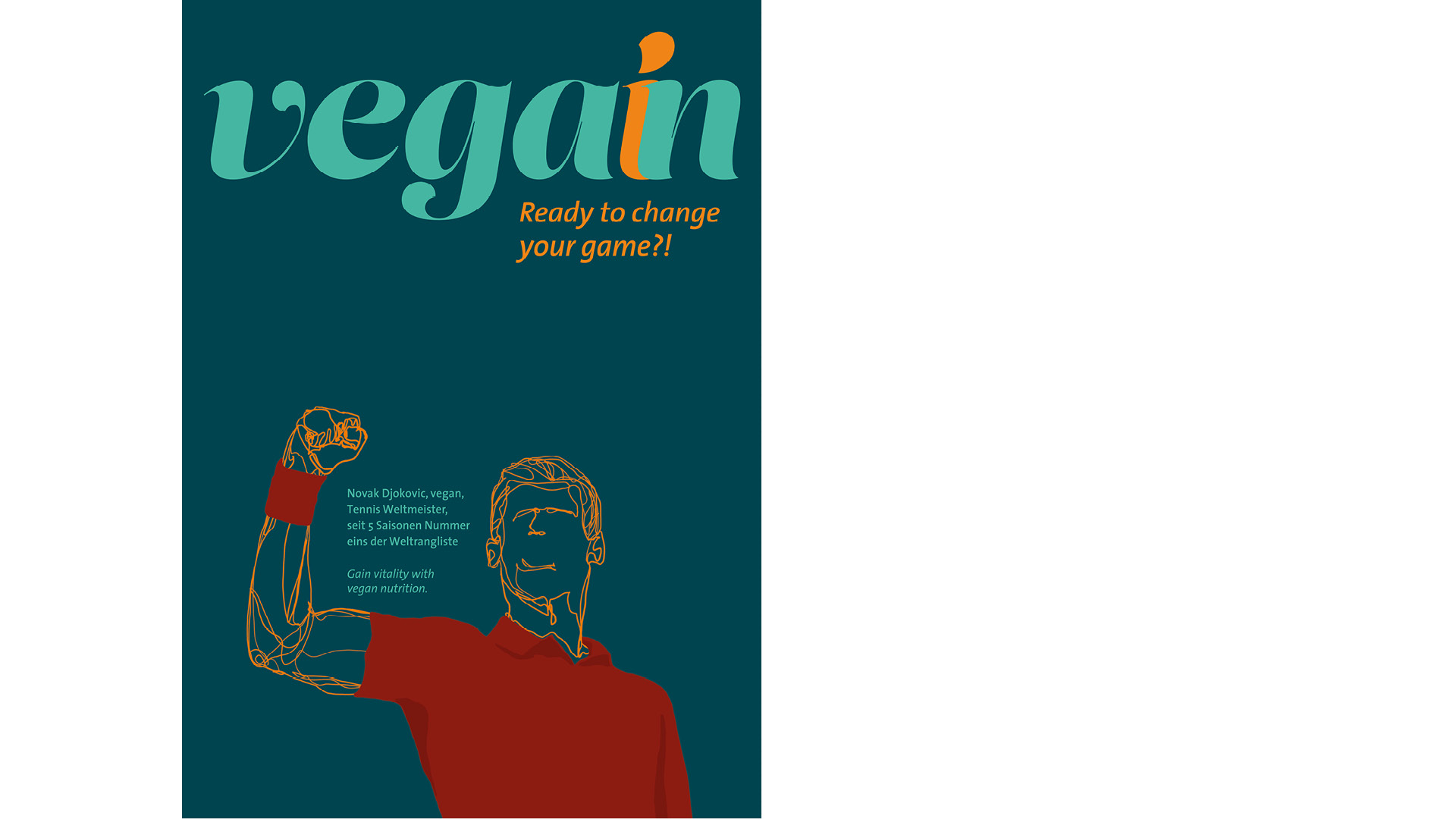 Durch das gestalten einer Kampagne soll ein Imagewandel entstehen bzw. das Thema vegane Ernährung einer bestimmten Zielgruppe nähergebracht werden. Es wurde eine Plakatreihe entwickelt, die in unterschiedlichen Fitnessstudios aufgehängt wird. Diese Plakate sollen sowohl als Print-Sujets in Fitness-Magazinen, als auch in Form von Instagram-Beiträgen auf der Seite des Unternehmens veröffentlicht werden. Zusätzlich wurden diverse GIFs/Videos animiert, die ebenfalls im Instagram Account gepostet werden können. Die sportlichen Höchstleistungen sorgfältig ausgewählter, veganer Athletinnen und Athleten werden kurz und prägnant in einem Text erfasst. Die harmonischen, jedoch kontrastreichen Farben bilden gemeinsam mit den technoiden Illustrationen und der auffälligen Typografie ein interessantes Gesamtwerk.