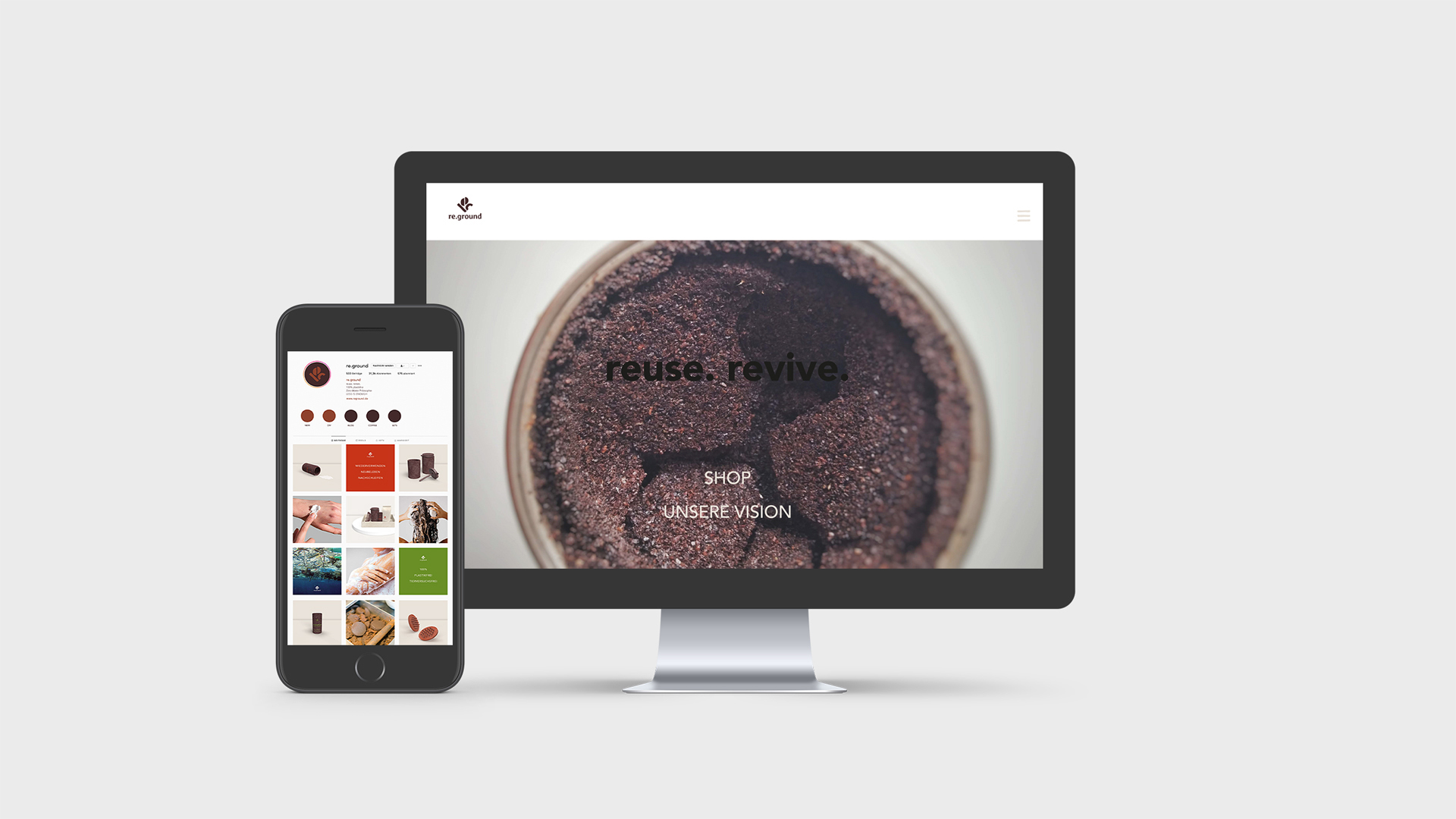 ›reuse. revive.‹ Rund 120 Milliarden Verpackungseinheiten werden jährlich der globalen Kosmetikindustrie zugeschrieben. Mithilfe der Nutzung von nachfüllbaren Behältern können in der Produktion von Kosmetika circa 70 Prozent Wasser gespart werden. Die Kosmetikmarke dreht sich rund um das Upcycling von Kaffeesatz. Re.ground recycelt Kaffeesatz aus regionalen Lokalen und entwickelt aus vermeintlichen Abfall ein beständiges und robustes Material. Die Pflegeprodukte werden als Pulver verkauft, welches mit Wasser aufgefüllt wird. Das spart Gewicht, Volumen und Transportwege, wodurch der CO2 Ausstoß maßgeblich reduziert wird. Zudem sind alle Inhaltsstoffe umweltfreundlich, plastik- und tierversuchsfrei. Wer schön sein will, lässt nicht seine Umwelt leiden.