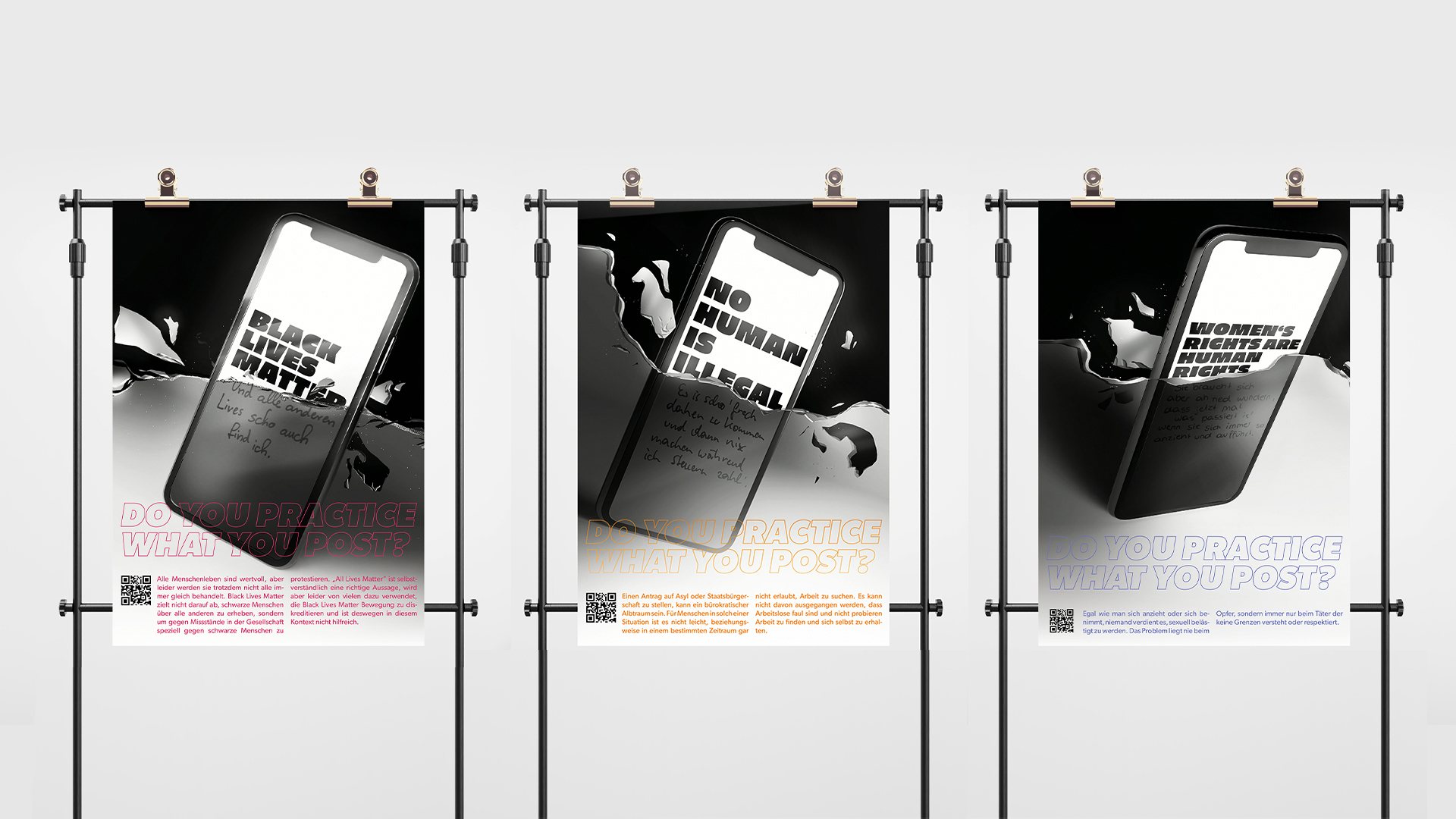 Das Projekt soll auf die Diskrepanz zwischen unserer auf Social Media präsentierten Persönlichkeit und unseren Ansichten und Handlungen im echten Leben aufmerksam machen. Es wird dazu aufgefordert zu überlegen, ob man aktivistische Inhalte, welche man im Internet teilt, auch offline unterstützt. Ein weiterer Aspekt dieser Arbeit ist die Aufklärung. Es soll erklärt werden, warum spezielle Meinungen und Gedankengut die in dieser Arbeit behandelten Sozialen Bewegungen nicht unterstützen oder gar schädlich für diese sind.