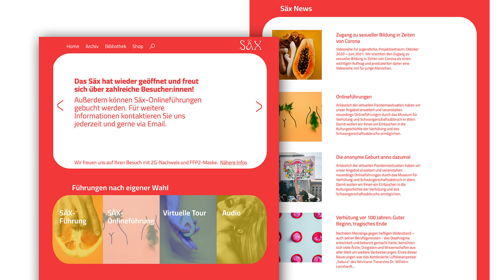 Das Muvs hat im Verlauf des fiktiven Projektes ein Re-Design bekommen. Dadurch soll es frischer und jünger auftreten. Außerdem soll damit die Zielgruppe von Kindern bis junge Erwachsene im Fokus stehen. Durch die Namens Anpassung wird auch die Programmerweiterung des Museums signalisiert und ist ein Hingucker durch die grellen Farben. Hauptaugenmerk ist die konzeptionelle Idee, dass das Säx Museum Kooperationen mit diversen Künstler·innen führt und Raum für Lesungen von Aufklärungsbüchern zur Verfügung stellt. –mit Kathrin Krause