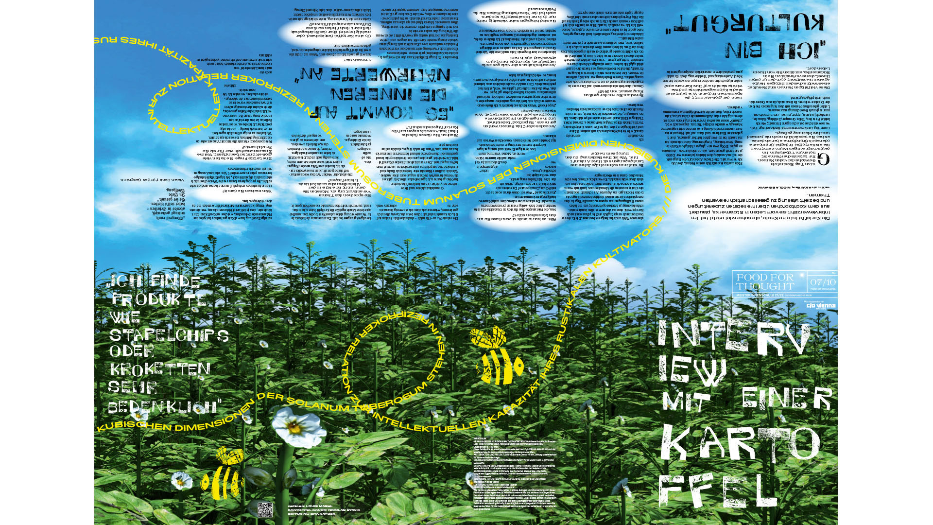 Interview mit einer Kartoffel Kartoffeln sind besonders in Deutschland und Oesterreich ein sehr verbreitetes Gericht. Sie war gefühlt schon immer da. Aber wo kommt sie urspruenglich her? Wie fuehlt sich eine Kartoffel eigentlich in der Gesellschaft? Gibt es etwas was die Kartoffel gerne mal loswerden moechte? Diese Fragen und noch vieles mehr werden in dem Interview einer Kartoffel geklaert, dass dem Grundnahrungsmittel eine Stimme verleiht. Das Plakat wird als Beileger in der neuen Ausgabe des C/O Vienna Magazins veröffentlicht. Render: Louis Masel