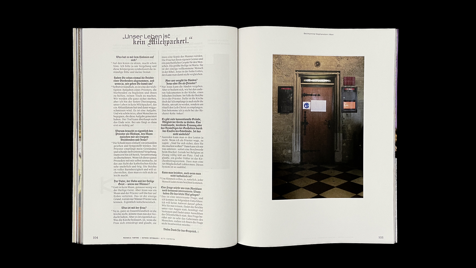›Das Leben ist kein Milchpackerl‹ Die Wahrheit ist, ich habe gelogen. Damals im Beichtzimmer mit sieben Jahren, als ich mich nicht mehr länger vor den Bußsakramenten drücken konnte. Allein in einem Raum mit einem autoritären Mann, wer würde da nicht nervös geworden sein und vielleicht etwas die Wahrheit verdreht haben? ›Die Beichte‹ ist Teil des Lügen-Issues des C/O Vienna Magazins und behandelt kontroverse Themen rund um die katholische Kirche. Klärende Antworten bekommt man im Interview mit Pater Florian als Stellvertreter Gottes. – mit Kathrin Rothbauer