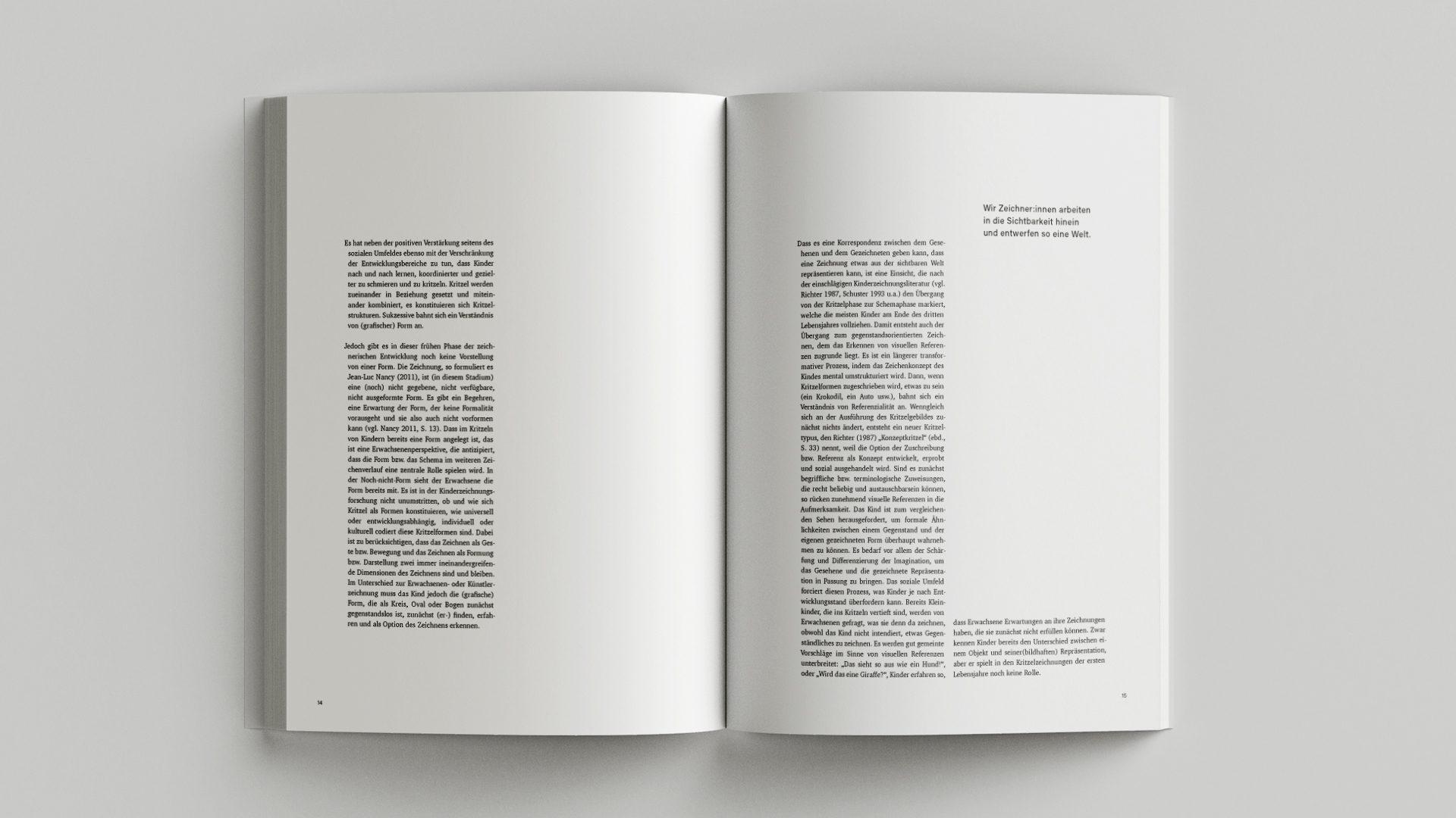 ›Eigentlich kann ich nicht zeichnen, außer Raumschiffe.‹ Als Kinder sind wir voller Euphorie, wenn wir zum ersten Mal Buntstifte in unseren Händen halten. Wir erkunden die Möglichkeiten und hinterlassen Spuren auf dem Papier. So erschaffen wir mit Freude und ohne vorherige Absicht etwas, das Erwachsene unsere ersten eigenen Werke nennen. Doch Vergleiche und Bewertungen lassen Druck entstehen, sodass die Freude schwindet. Als vielversprechendes Medium unseres Ausdrucks verkümmert das Zeichnen, ohne dass man je sein Potential erfahren durfte. Die Zeichnung ist jedoch mehr als nur ein Mittel, um etwas abzubilden. Sie ist eine freie Ausdrucksform, vergleichbar mit einer einzigartigen Sprache. Sie eröffnet uns neue Wege, unsere Gedanken und Empfindungen auf eine ganz besondere Art und Weise auszudrücken.