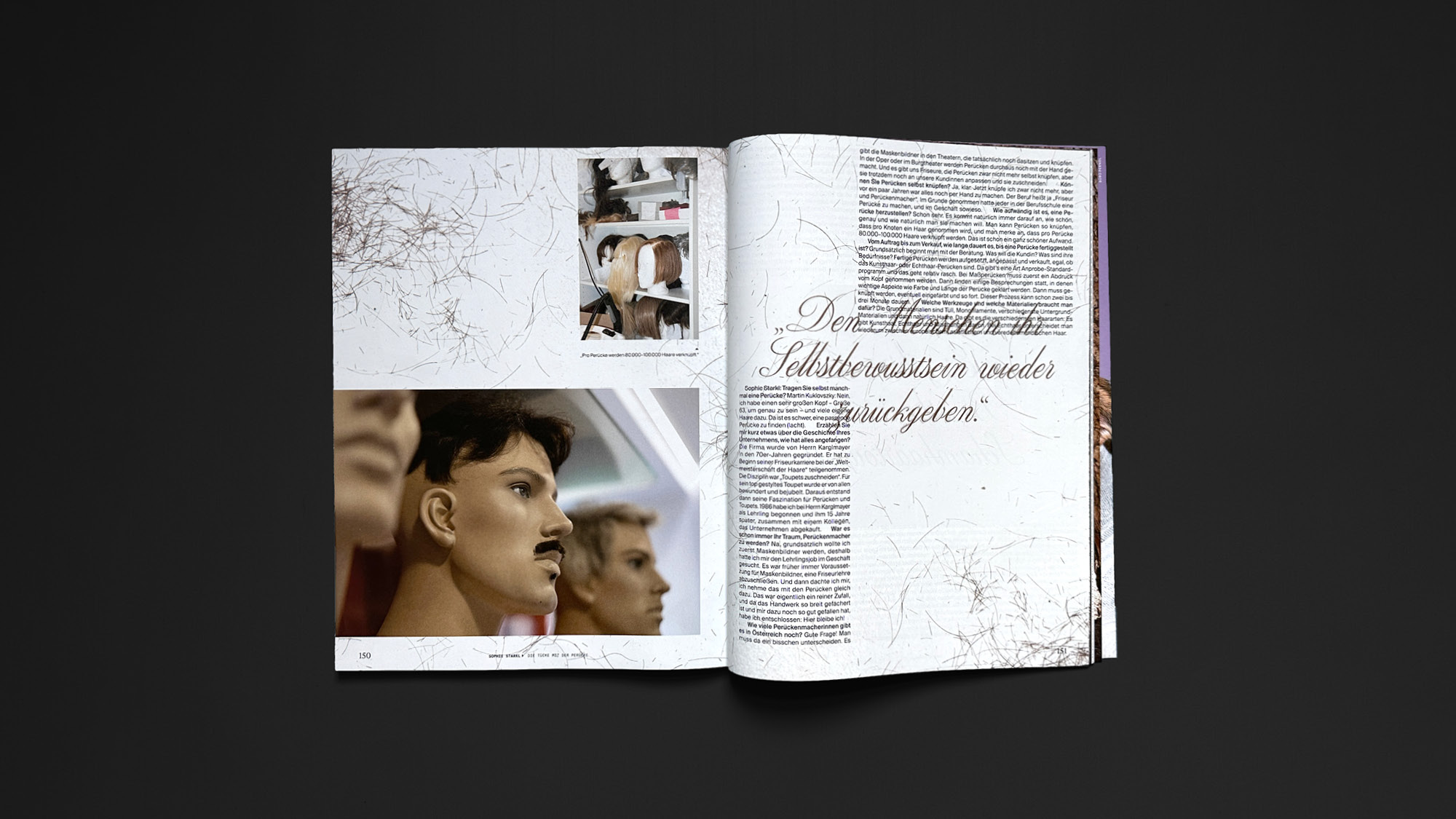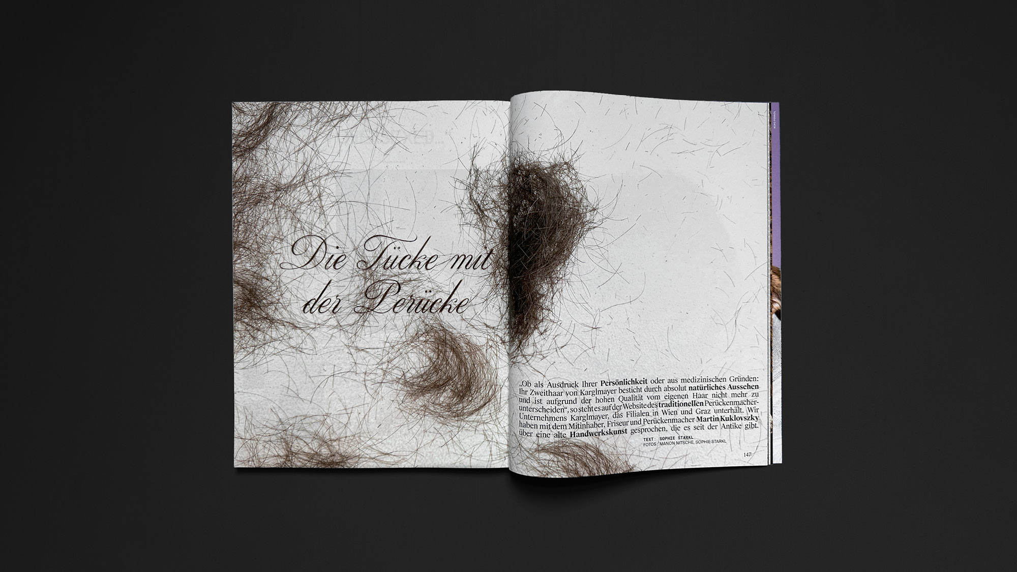 ›Es gibt auch Brusthaar- und Schamhaartoupets.‹ In Kooperation mit dem C/O Vienna Magazin entstand ein Artikel zu dem Thema Perücken. „Ob als Ausdruck Ihrer Persönlichkeit oder aus medizinischen Gründen: Ihr Zweithaar von Karglmayer besticht durch absolut natürliches Aussehen und ist aufgrund der hohen Qualität vom eigenen Haar nicht mehr zu unterscheiden“, so steht es auf der Website des traditionellen Perückenmacher-Unternehmens Karglmayer, das Filialen in Wien und Graz unterhält. Wir haben mit dem Mitinhaber, Friseur und Perückenmacher Martin Kuklovszky über eine alte Handwerkskunst gesprochen, die es seit der Antike gibt. Zum Interview