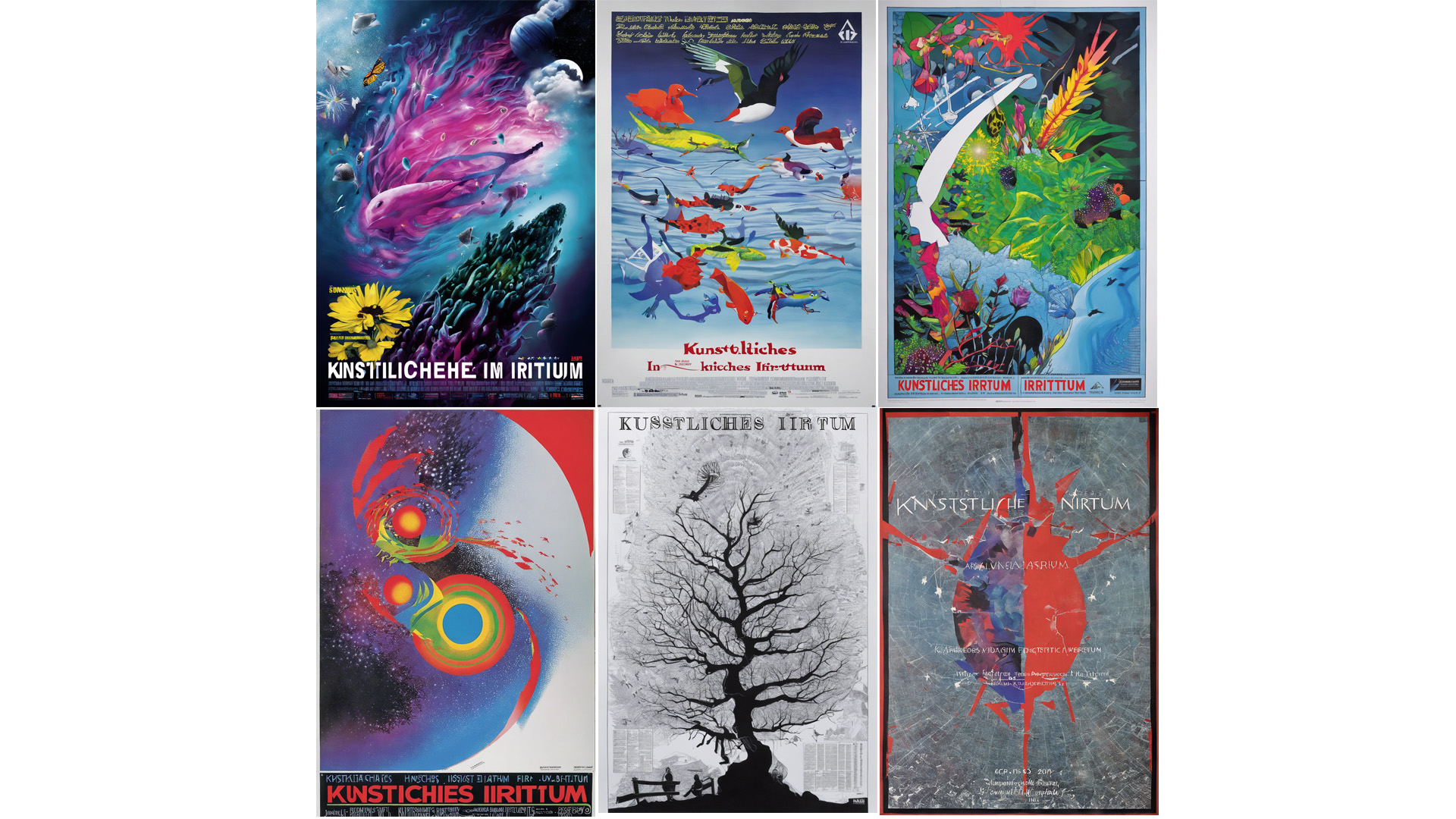 Der Jahrgang 2023/24 der Meister:innenschule beschäftigte sich ausgiebig mit der Thematik KI und erarbeitete über 2 Semester Material für eine Ausstellung. Ava Mitas und ich waren bei dieser Ausstellung für die Gestaltung der Plakate und Social Media Werbung verantwortlich. Hierfür haben wir mit “Plakat für eine Ausstellung” (und ähnlichen, weiteren Spezifikationen) in DreamStudio gepromptet und die folgenden Plakate gestaltet. — mit Ava Mitas