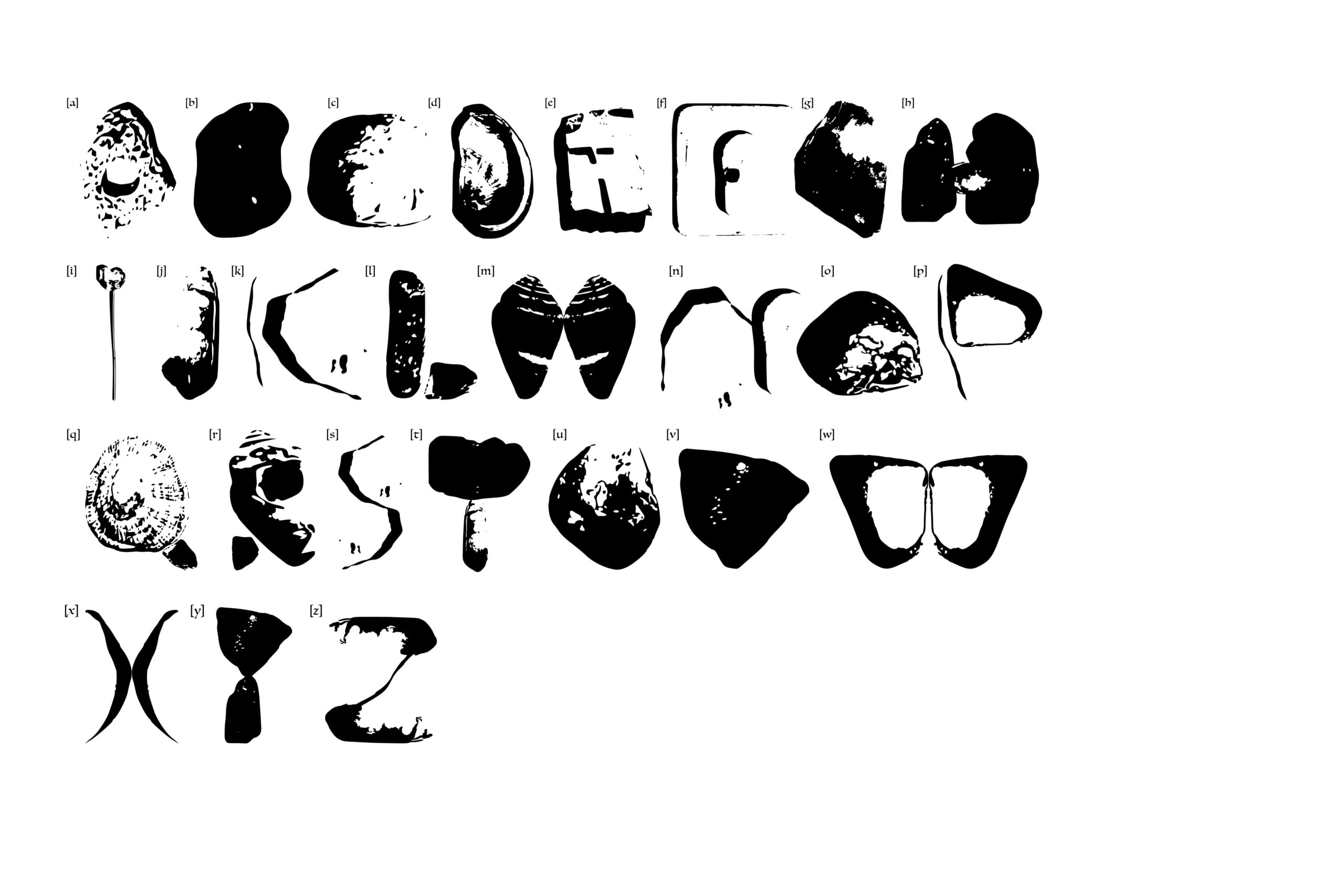 Die Schrift „Susak“ basiert auf gesammelten Objekten, die von der Insel Susak (Kroatien) stammen.