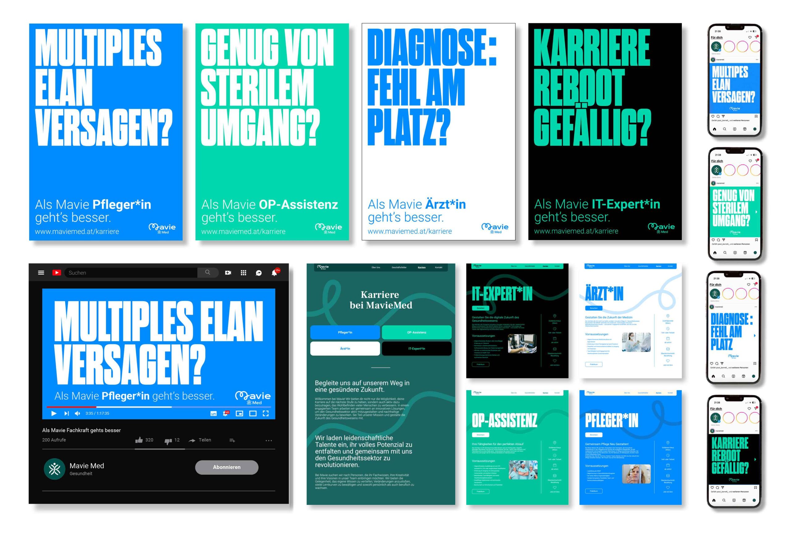 Für die Privatklinik-Holding MavieMed entstand eine Kampagne, die bewusst aneckt: Knallige Farben, fette Typo, keine lächelnden Testimonials. Statt ins Schema klassischer Jobselling-Kampagnen zu passen, setzt sie gezielt einen Kontrapunkt.