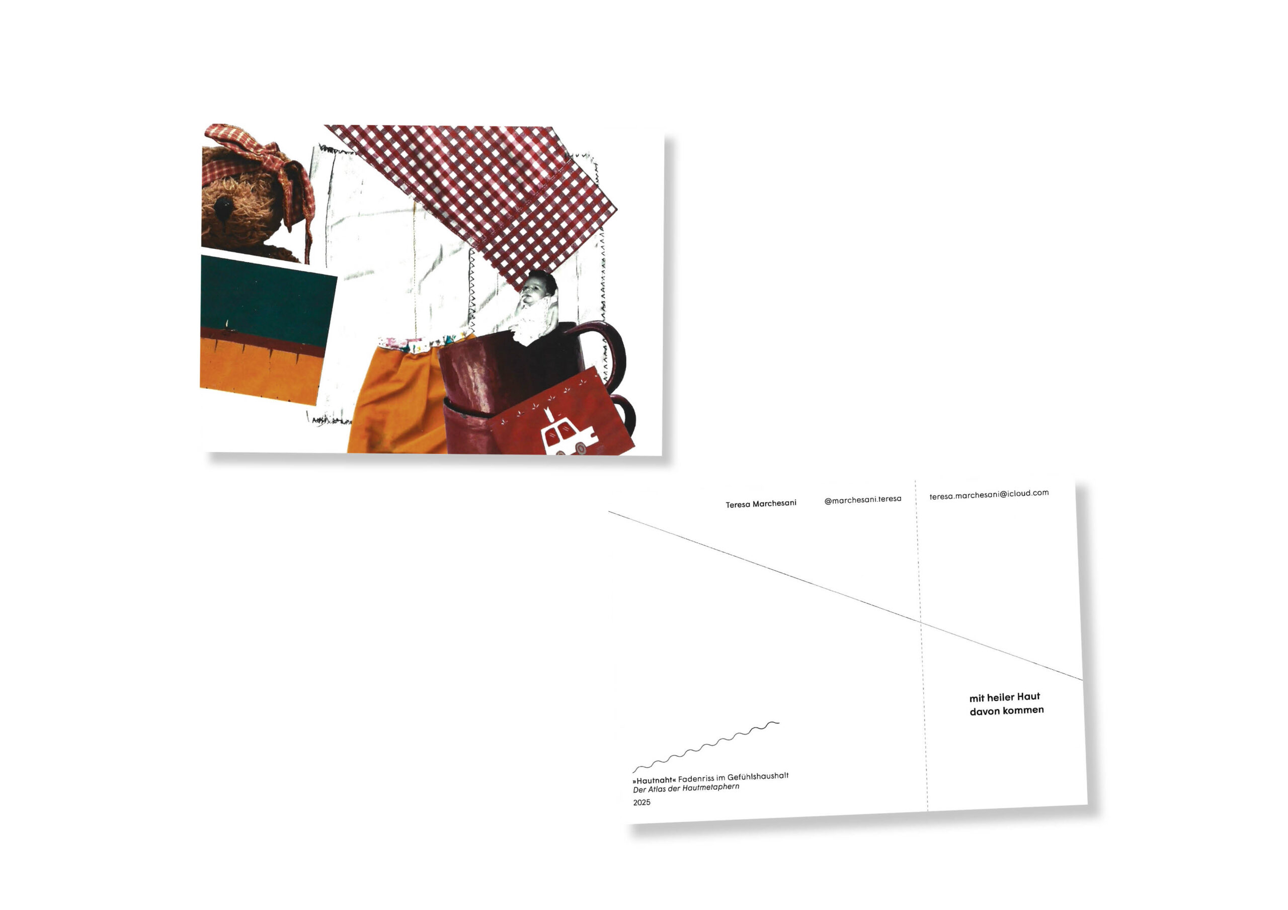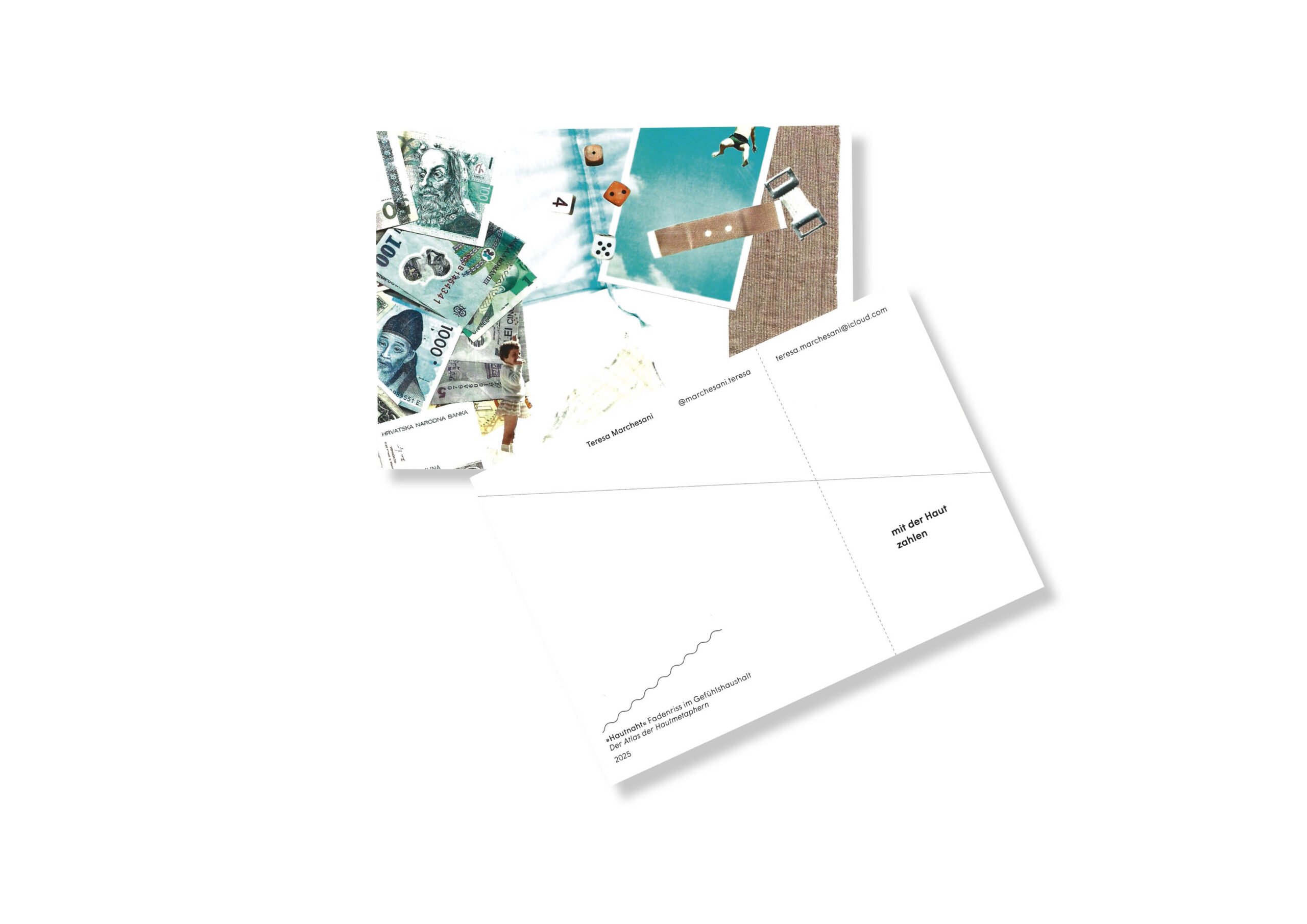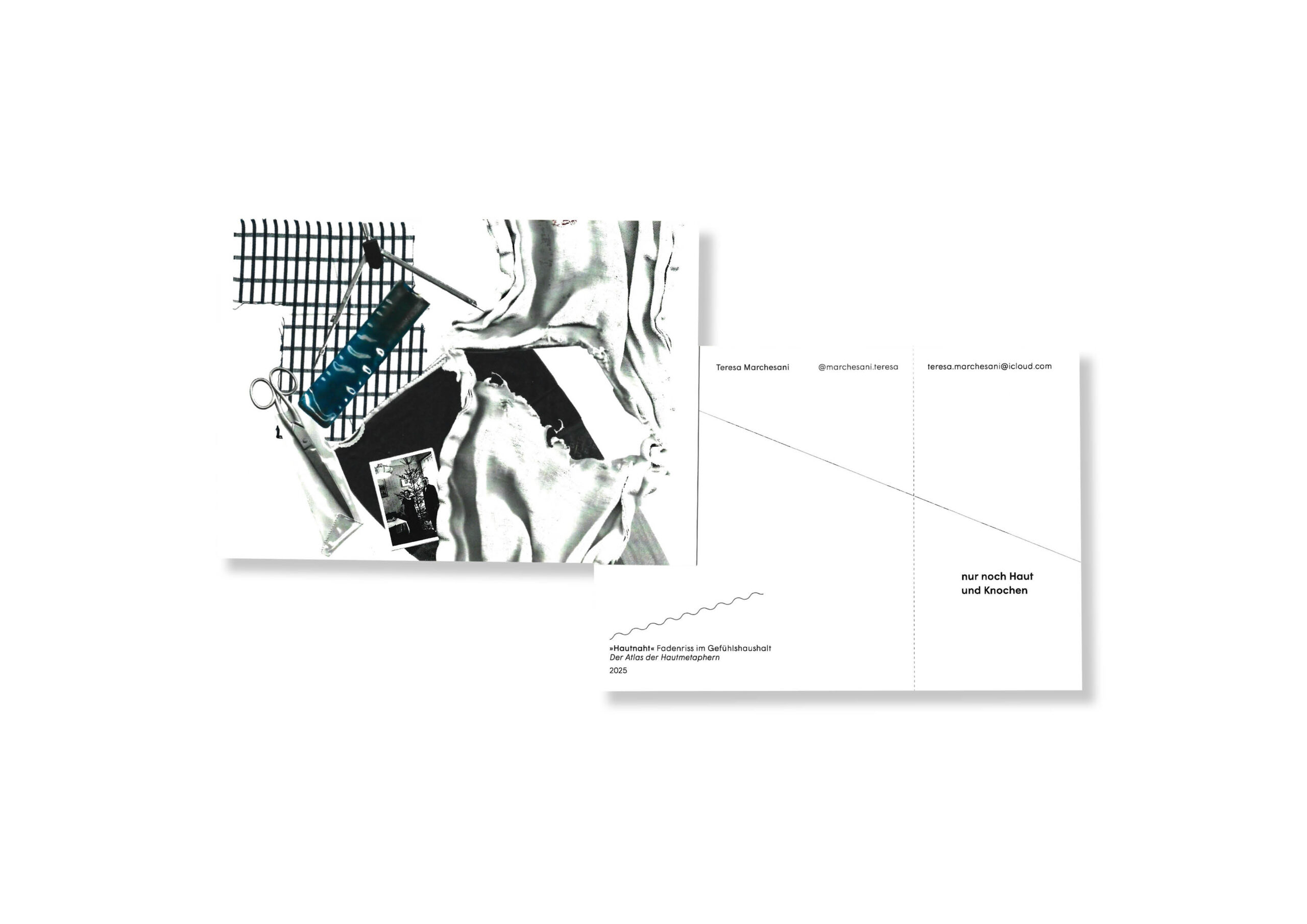 Diese Arbeit erforscht die Haut als Kommunikationsmedium – zwischen Sprache, Körper und Emotion. Im Zentrum stehen hautbezogene Metaphern aus dem Deutschen, Englischen, Italienischen und Französischen, gegliedert in die Kategorien Leib, Hülle und Leben. Literarische, kulturelle und persönliche Perspektiven verweben sich zu einem vielschichtigen Zugang: genäht, geschrieben, collagiert. Kleidung als »zweite Haut« wird zum gestalterischen Prinzip – Schnittmuster und Stoffe symbolisieren Schutz, Identität und Durchlässigkeit.Die Arbeit lädt ein, unsere Wahrnehmung von Haut – und wie sie spricht – neu zu betrachten. Link zum Video: (Diplom) https://youtu.be/bS64uoWUZ5k