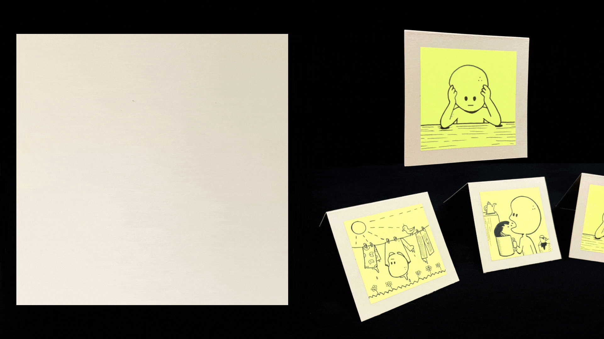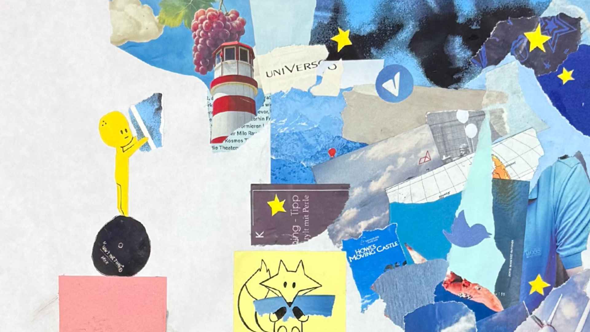 Während des Unterrichts in Originaldruck, Druck, Dako und in Pausen zwischendurch entstanden neue Arbeiten rund um Jovtok, eine Figur, die vor einigen Jahren entwickelt wurde. Mit der Zeit hat Jovtok immer mehr verspielte Freund*innen gefunden, und gemeinsam bevölkern sie eine wachsende, fantasievolle Welt. Durch verschiedene Medien – Texte, Comics, Collagekunst und Zines – nehmen ihre Geschichten Gestalt an. In diesem Jahr entstanden unter anderem ein Zine, mehrere Collagen, ein kleines Buch sowie viele kleine Zeichnungen auf Post-its. Wer Jovtok und seine charmanten Freund*innen näher kennenlernen möchte, findet sie auf Instagram oder TikTok unter @jovtok96.